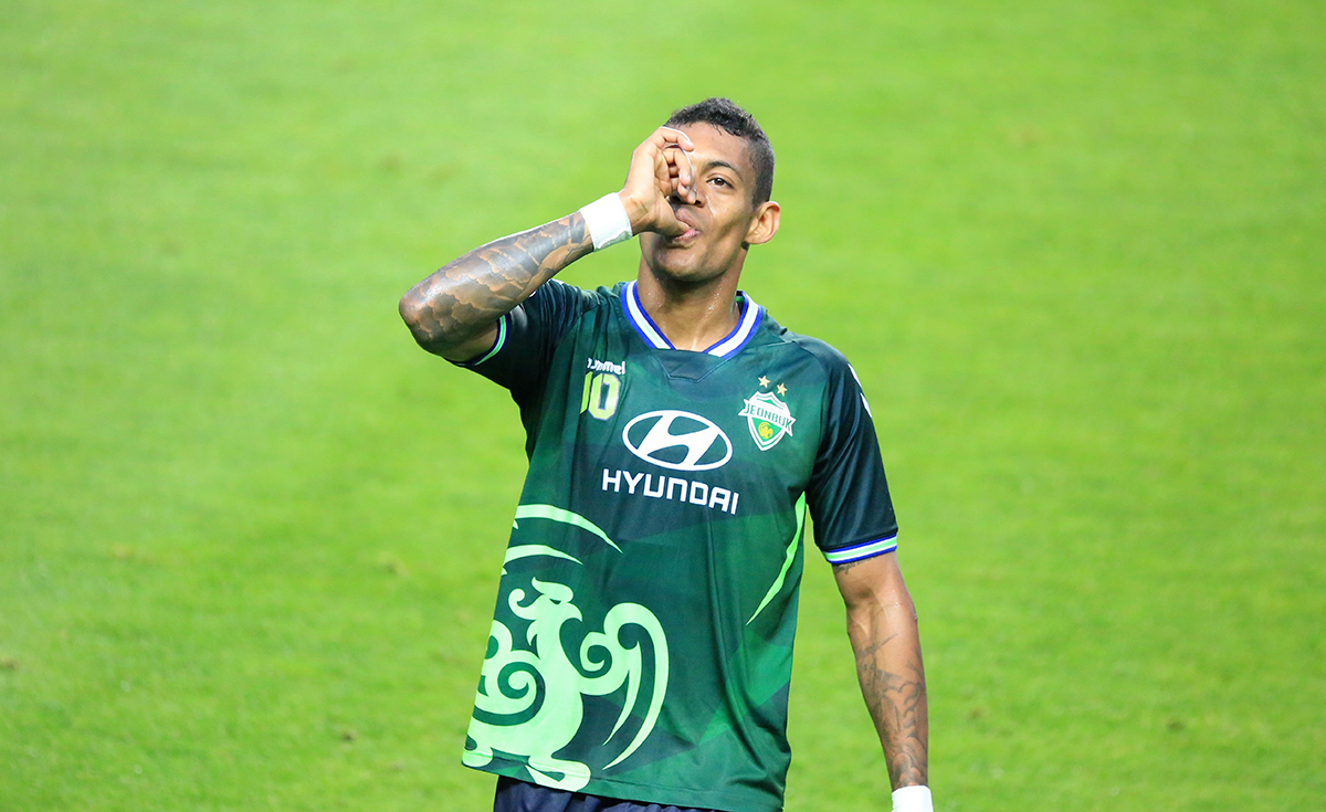 전북현대와 부리람유나이티드 의 경기에서 첫골을 넣은 로페즈(Ricardo Lopes Pereira)가 카메라 기자들을 향하여 가지 않고 관중석을 향하여 세레머니를 날린다