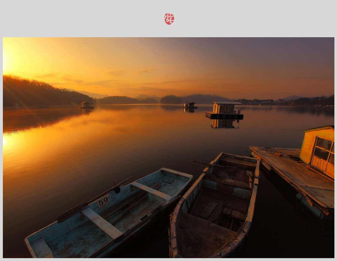 호수가의 아침은 붉은 빛으로 잠자던 쪽배들을 깨워낸다