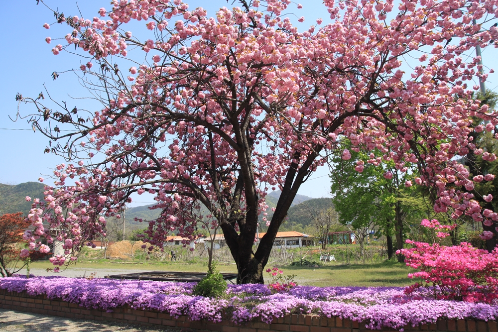벚꽃이 지고나면 피는꽃으로 하얀색과 연분홍색이 있다.