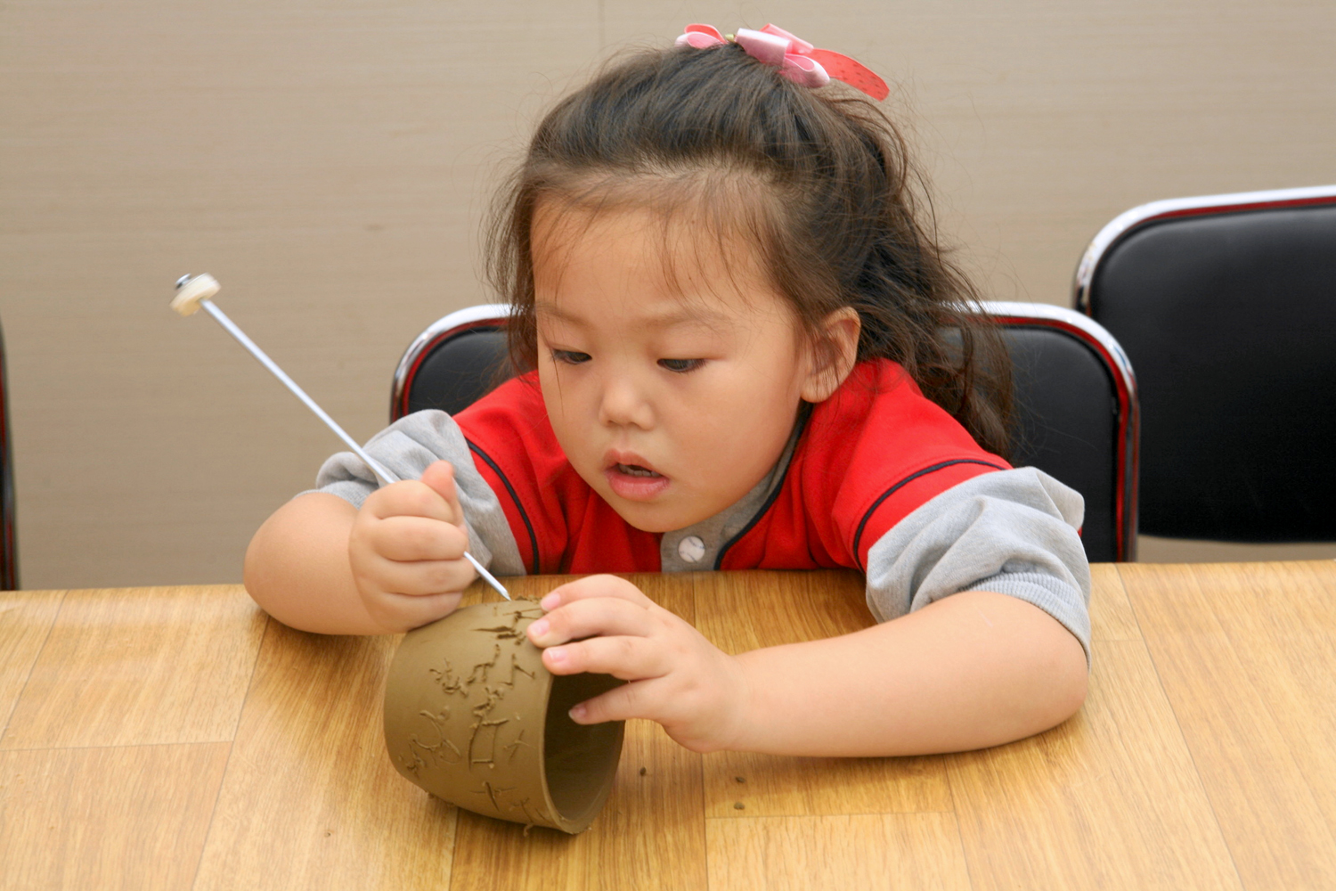 옹기축제 체험장에서 한 미래의 도예가가 작품을 안드네요~~~