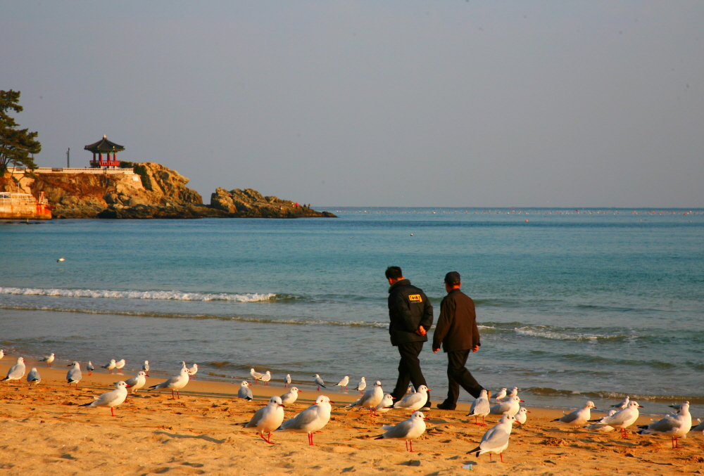 겨울 바닷가를 갈매기와 함께 산책합니다.
