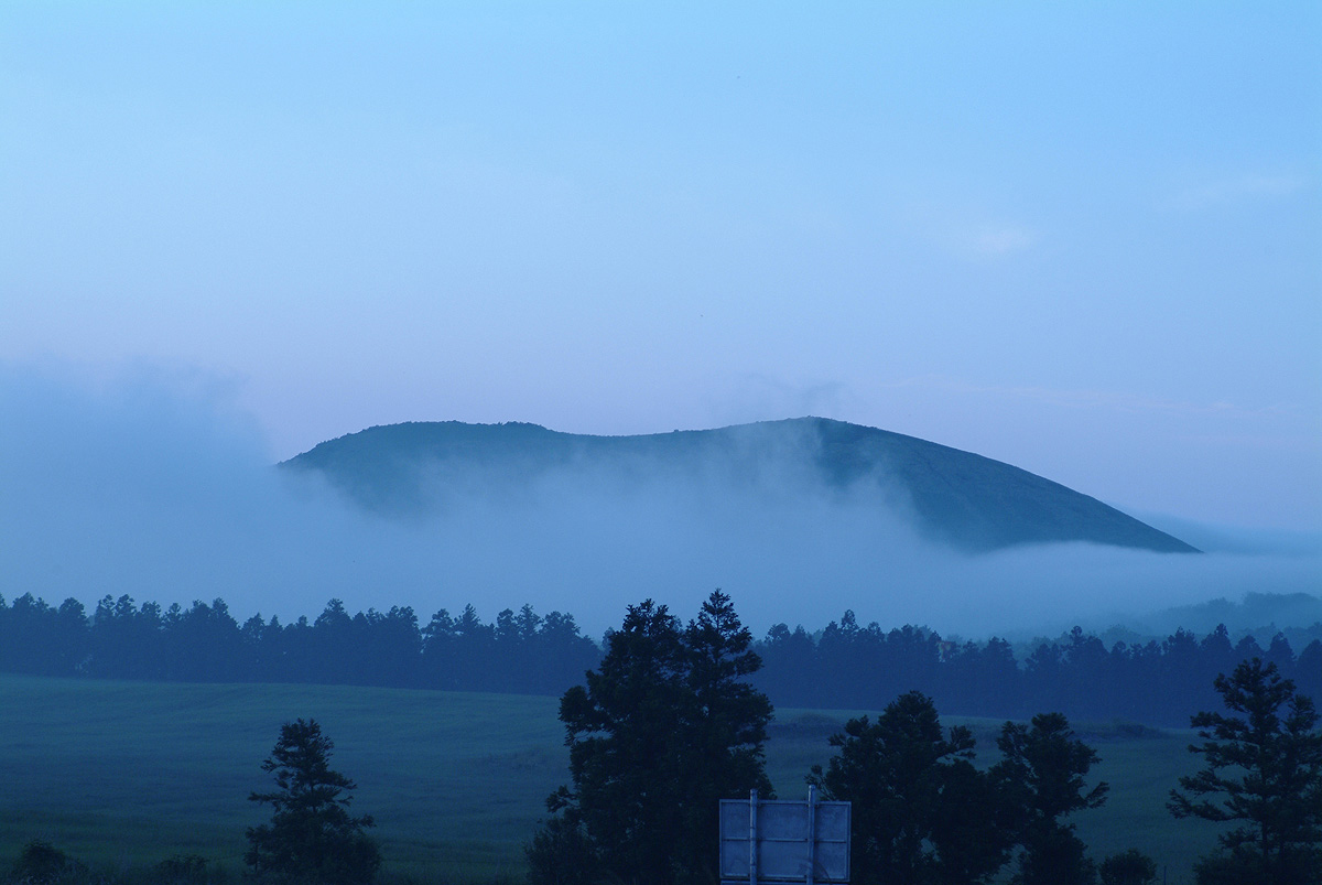 잠깐 사이에 해무가 걷히고 떠오르는 오름의 아름다움...