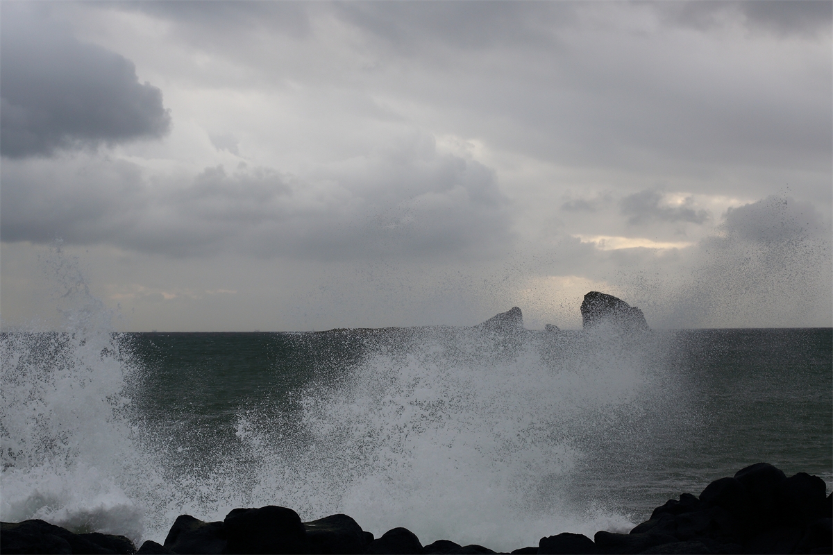 형제섬 일출 보러 갔다가 비와 파도만~~~