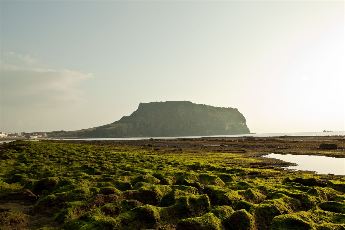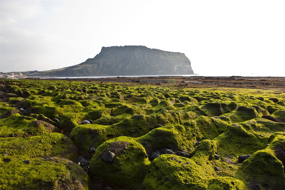 제주도 광치기해안의 일출봉과 이끼모습.