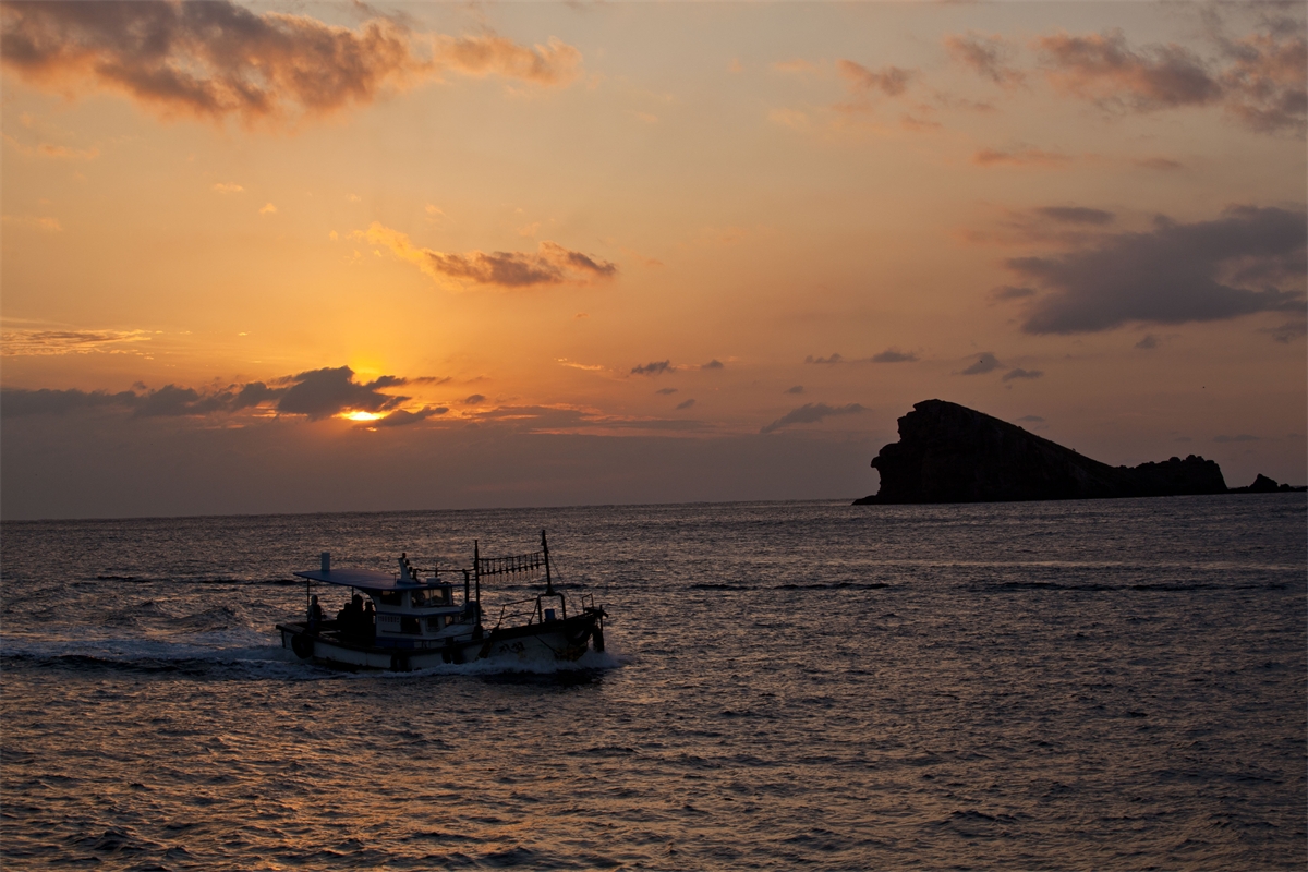 제주도 한경면 고산리 차귀도 앞바다에 귀항풍경