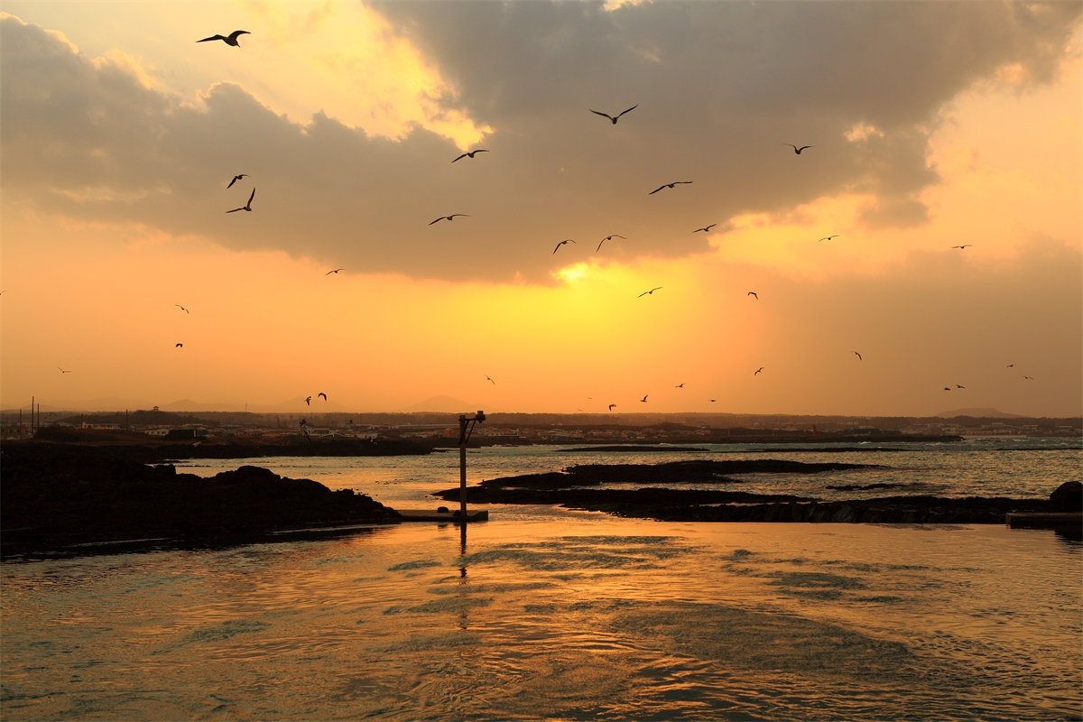 제주도 행원 바다 갈매기와 신년의 해를 담아본다.