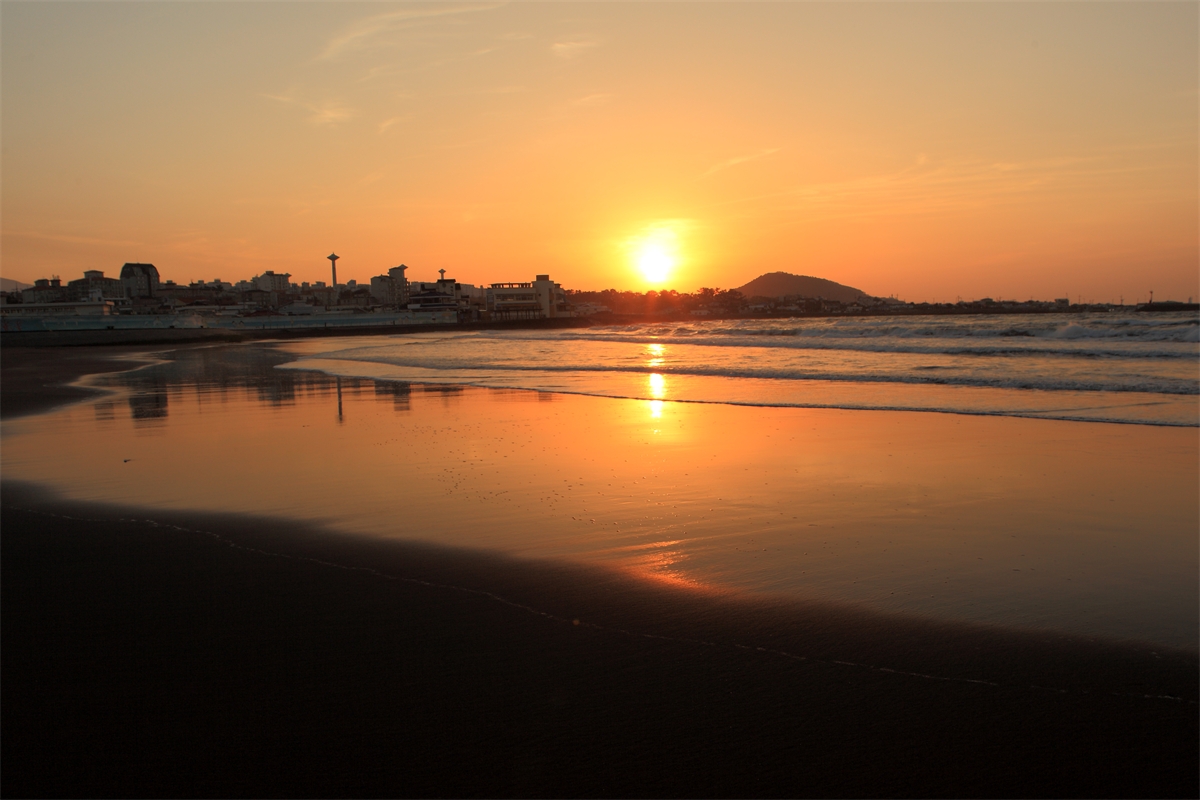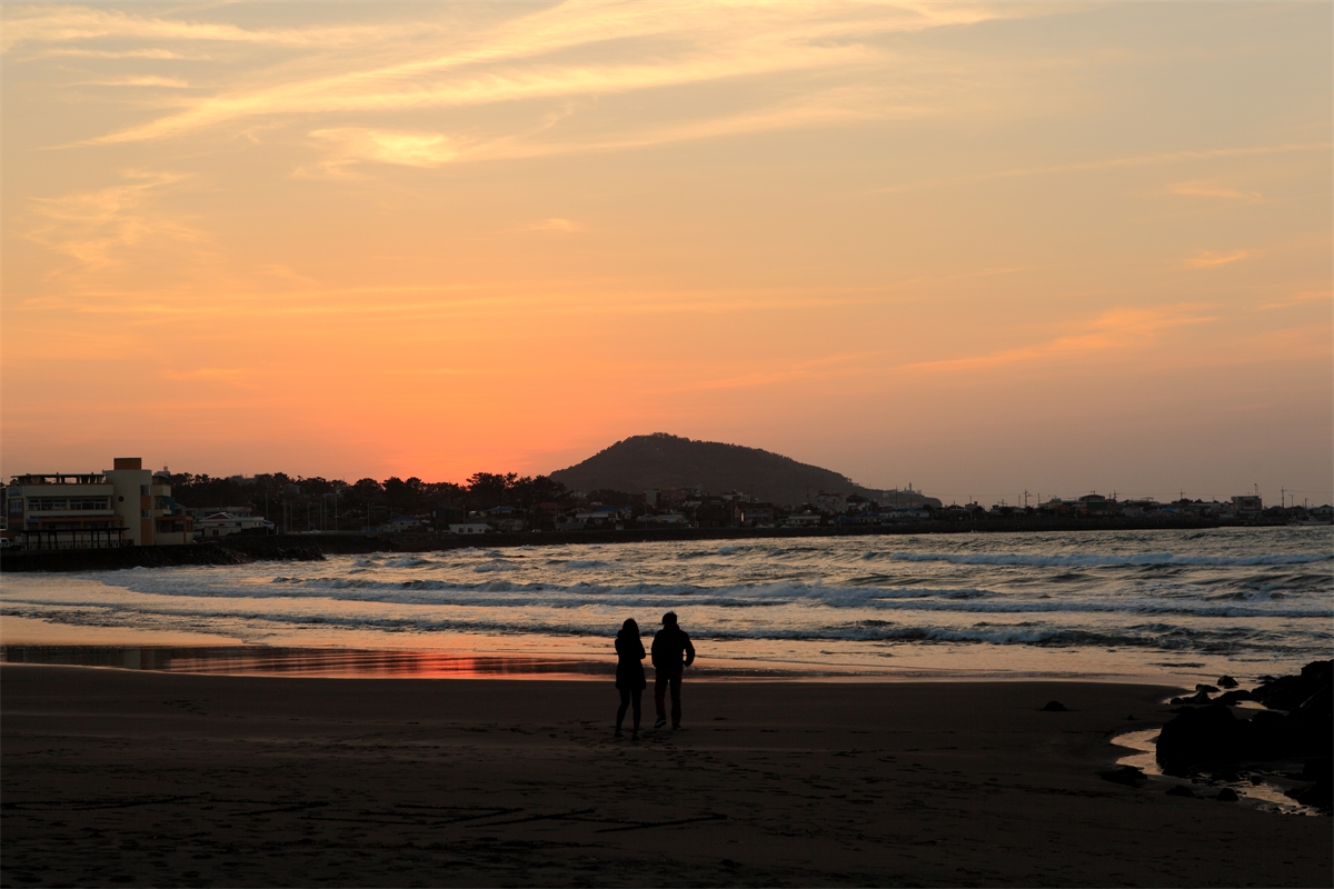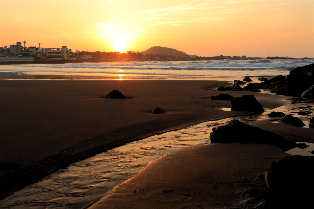 제주도 삼양 해수욕장 노을