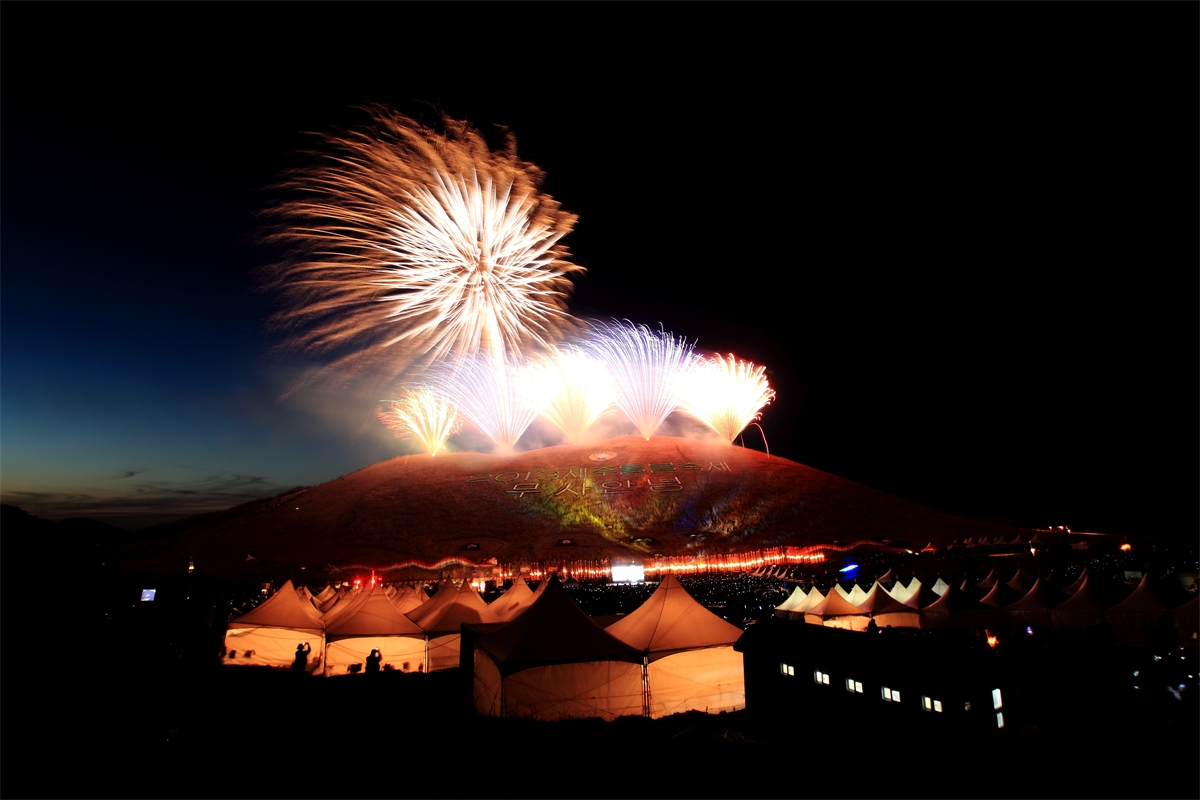 제주 들불축제에서 화려한 불꽃놀이를 담아 봅니다.