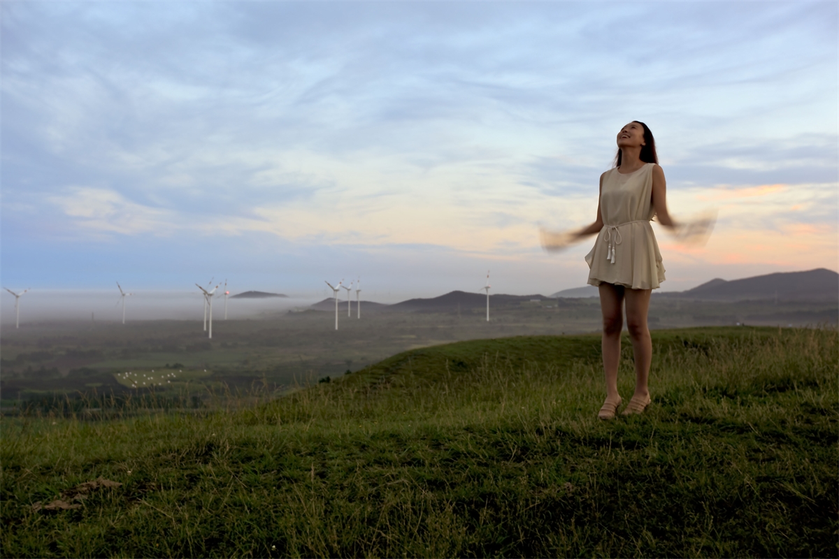 제주 용눈이 오름의 운무와 아름다움을 즐기는 사람들