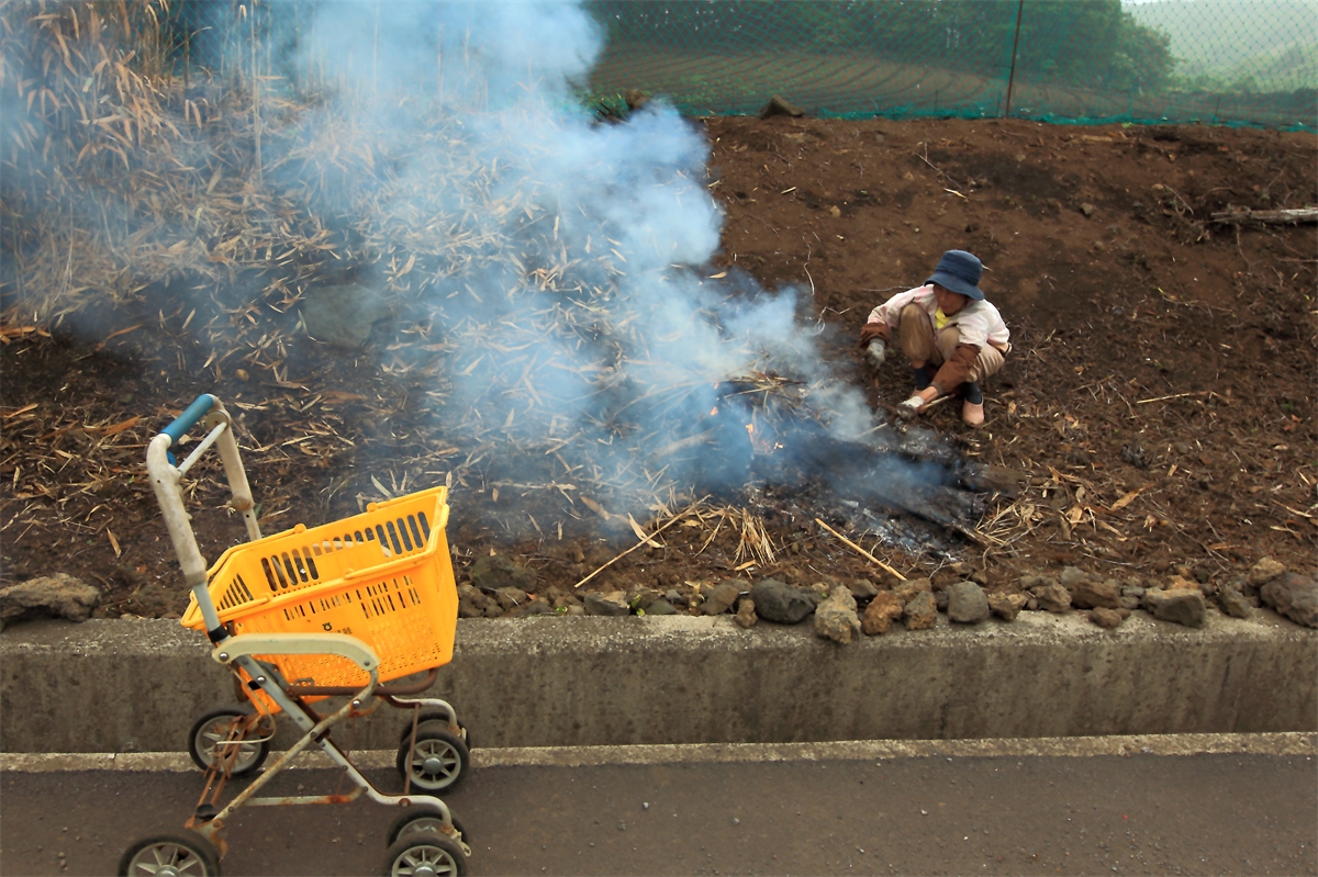 밭주변을 정리하시는 산촌의 할머니