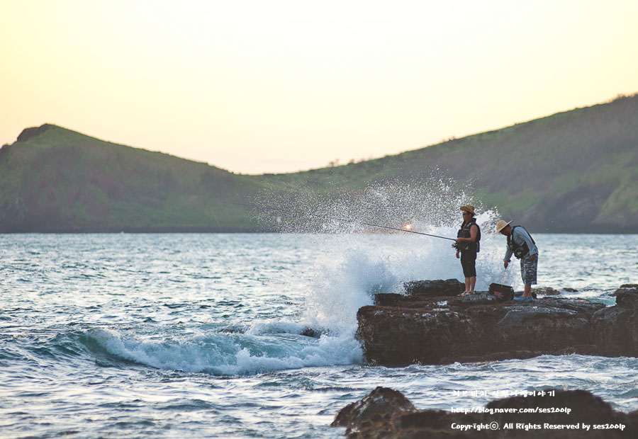 파도가 치는 곳에서의 아슬아슬한 낚시 !