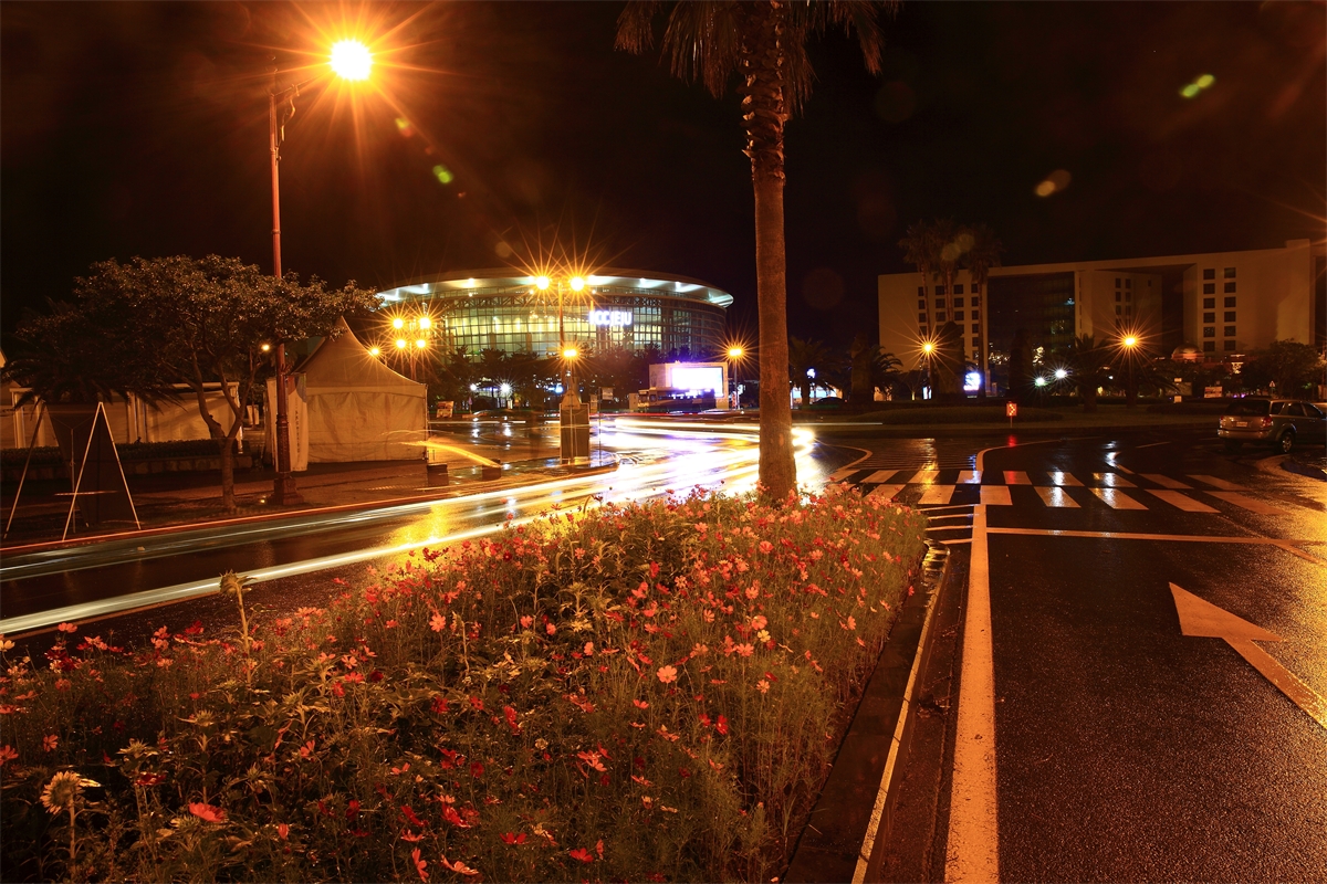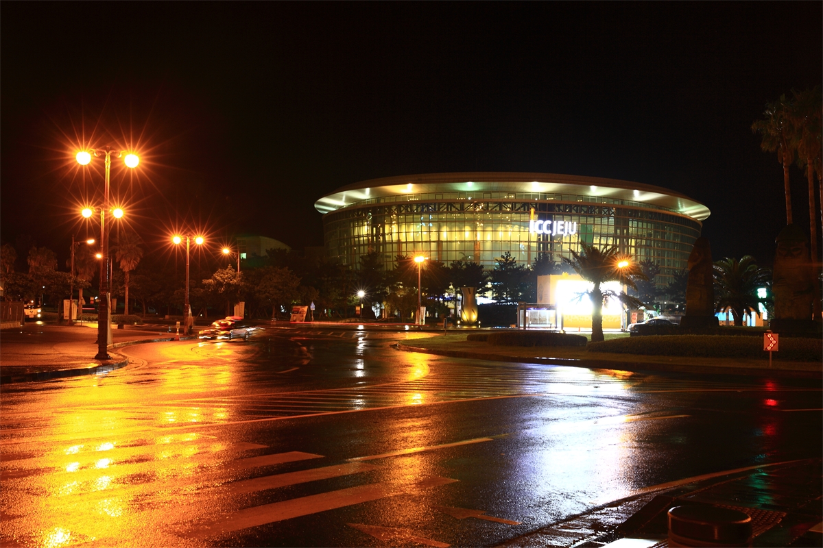 세계자연보전총회가 열리는 중문컨벤션센터에서 비오는 날 야경..