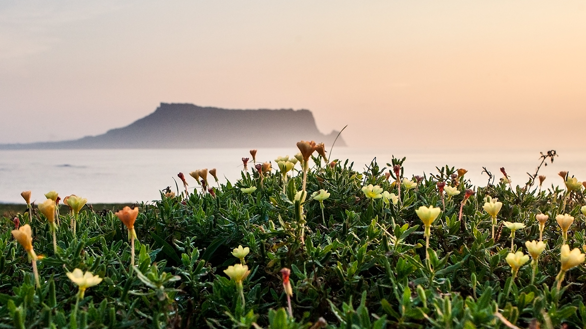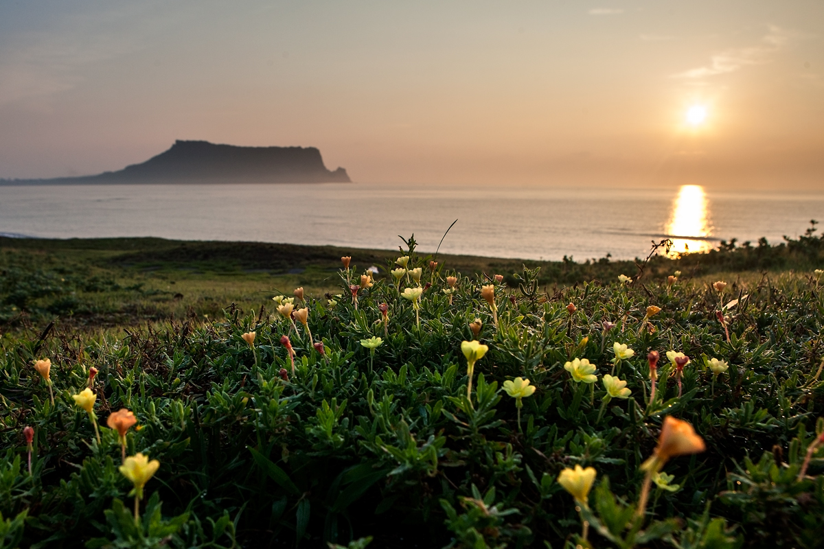 성산에는 애기달맞이꽃이 아침 해맞이를 한다.