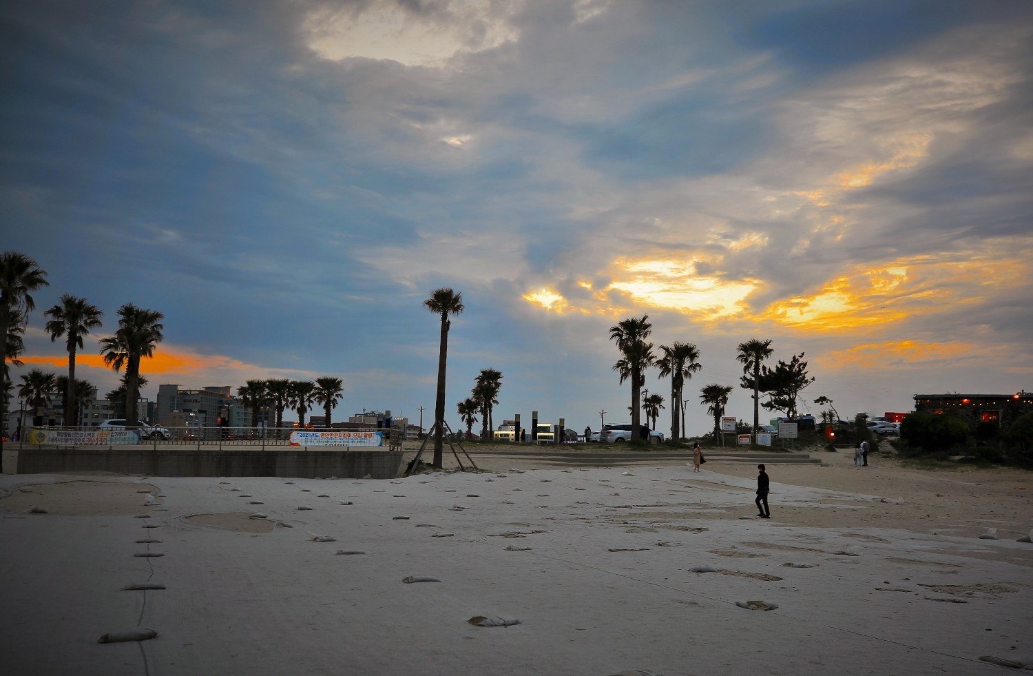 여행 첫날 숙소에 도착해서 저녁 먹으러 나왔다 만난 함덕 해수욕장의 저녁 노을 입니다.