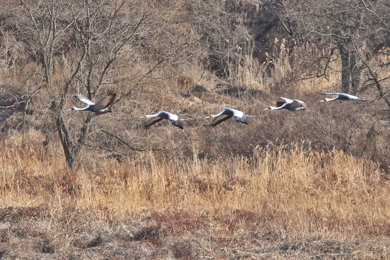 다음 목적지로 향하는 재두루미 가족