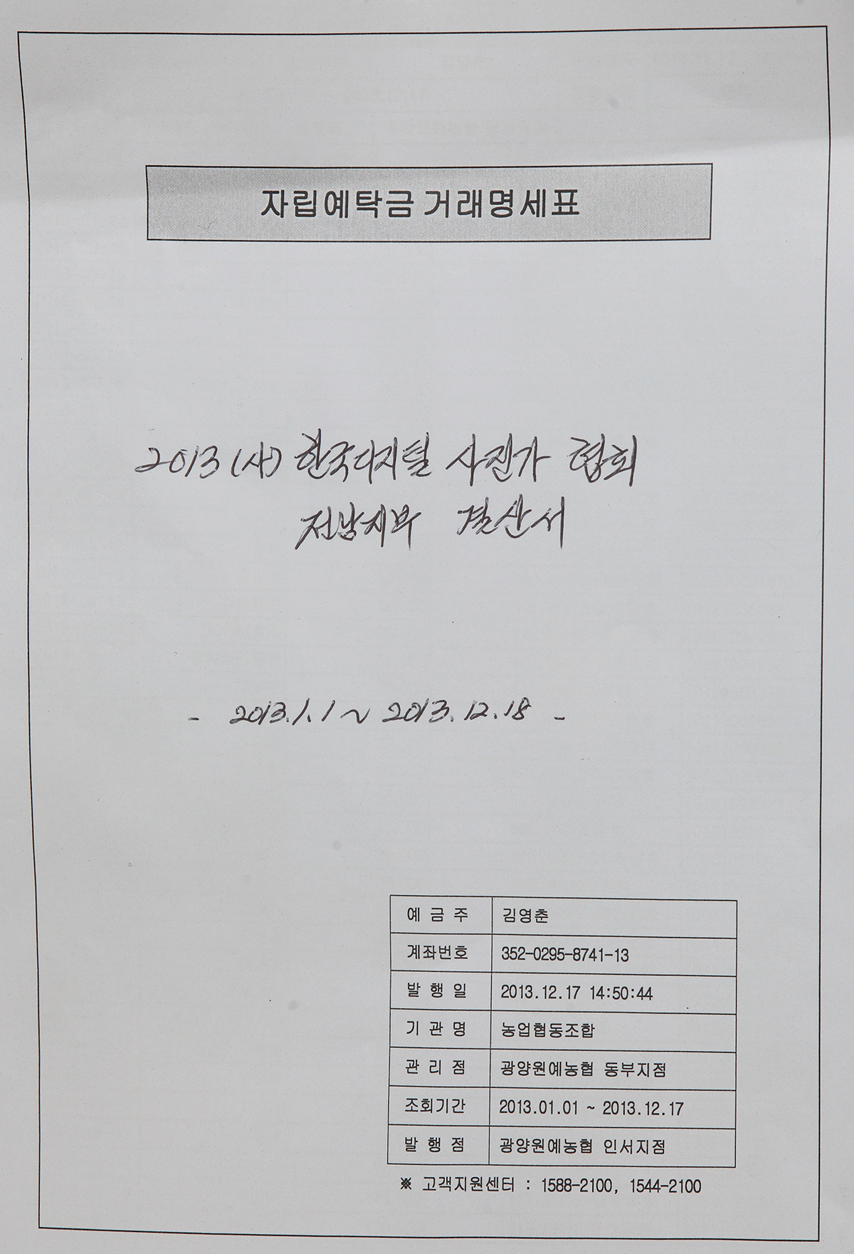 2013년 전남지부 예비 결산서를 첨부파일로 올리니