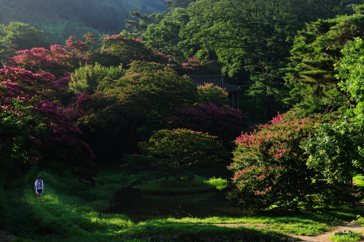 배롱나무 꽃은 겨우 절반 쯤 피어 있는데