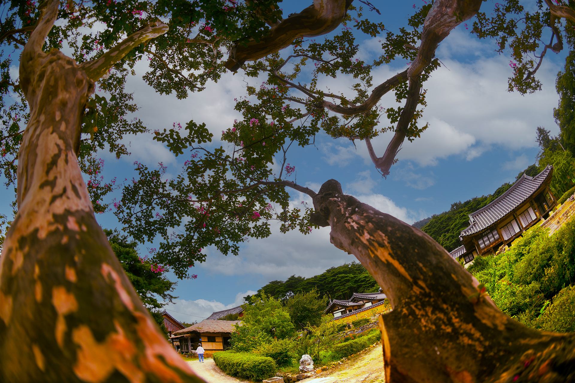논산 명재고택의 고목나부 배롱화를