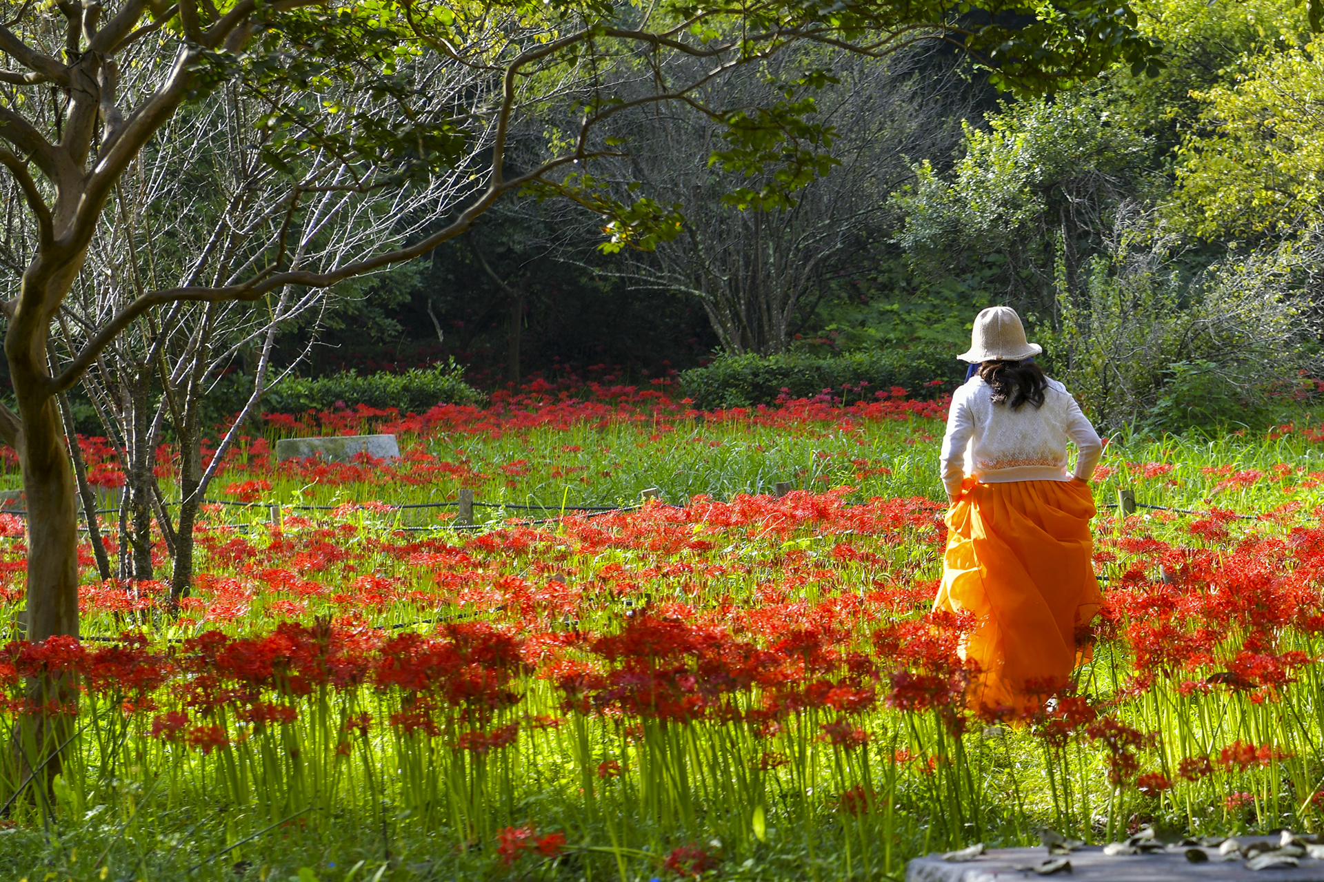 불갑사에서 꽃길를 산책 하는 여인을 담았습니다.