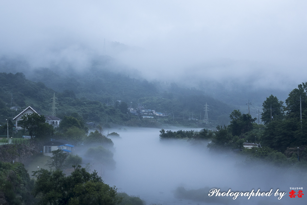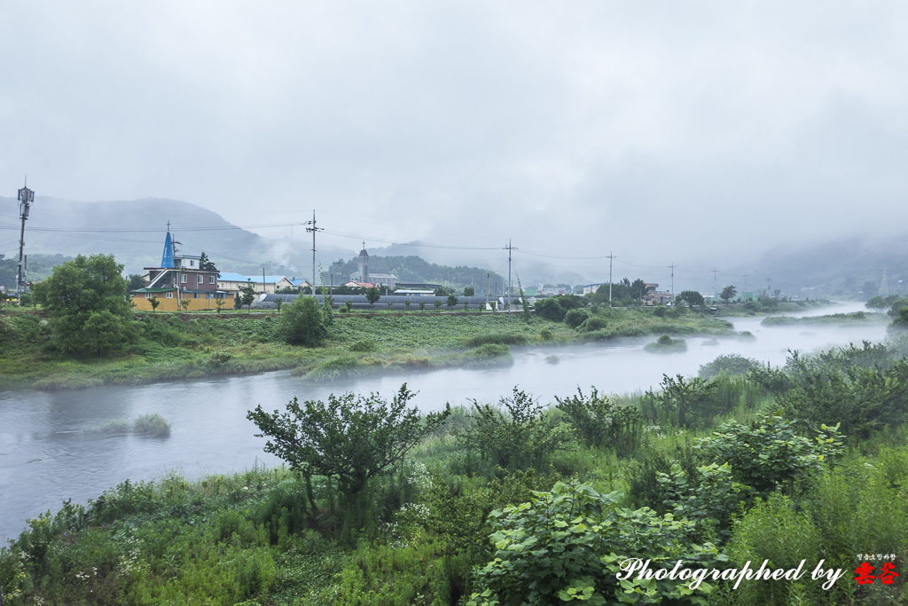 안개비속에 피어난 이사천의 물안개와 운무...