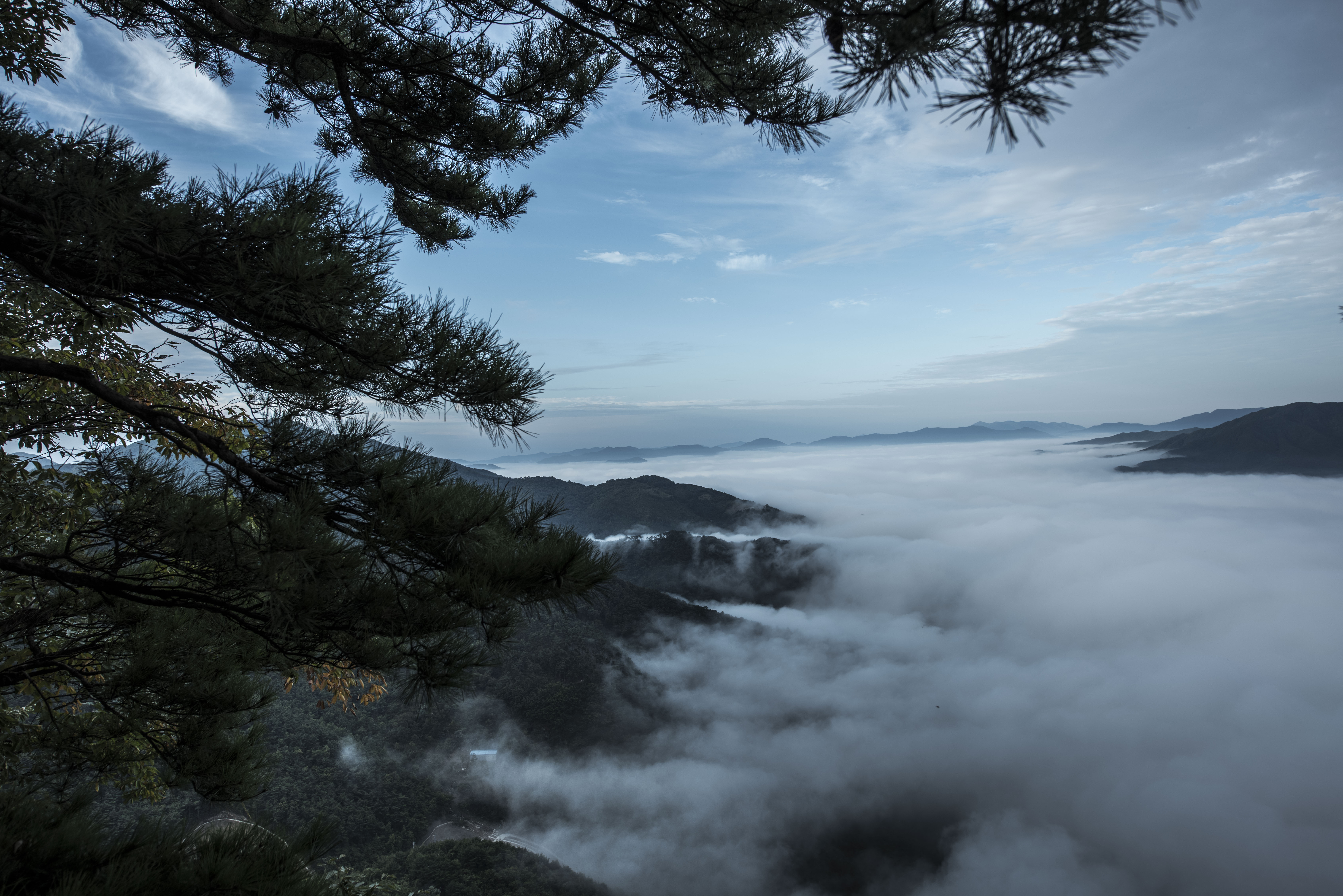 사상암 아침에 안개 속에서