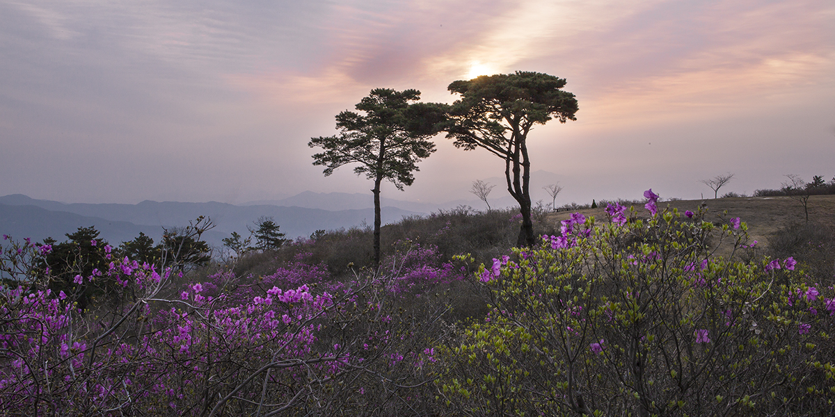 진달래가 반겨주는 광양 국사봉의 부부송 입니다.