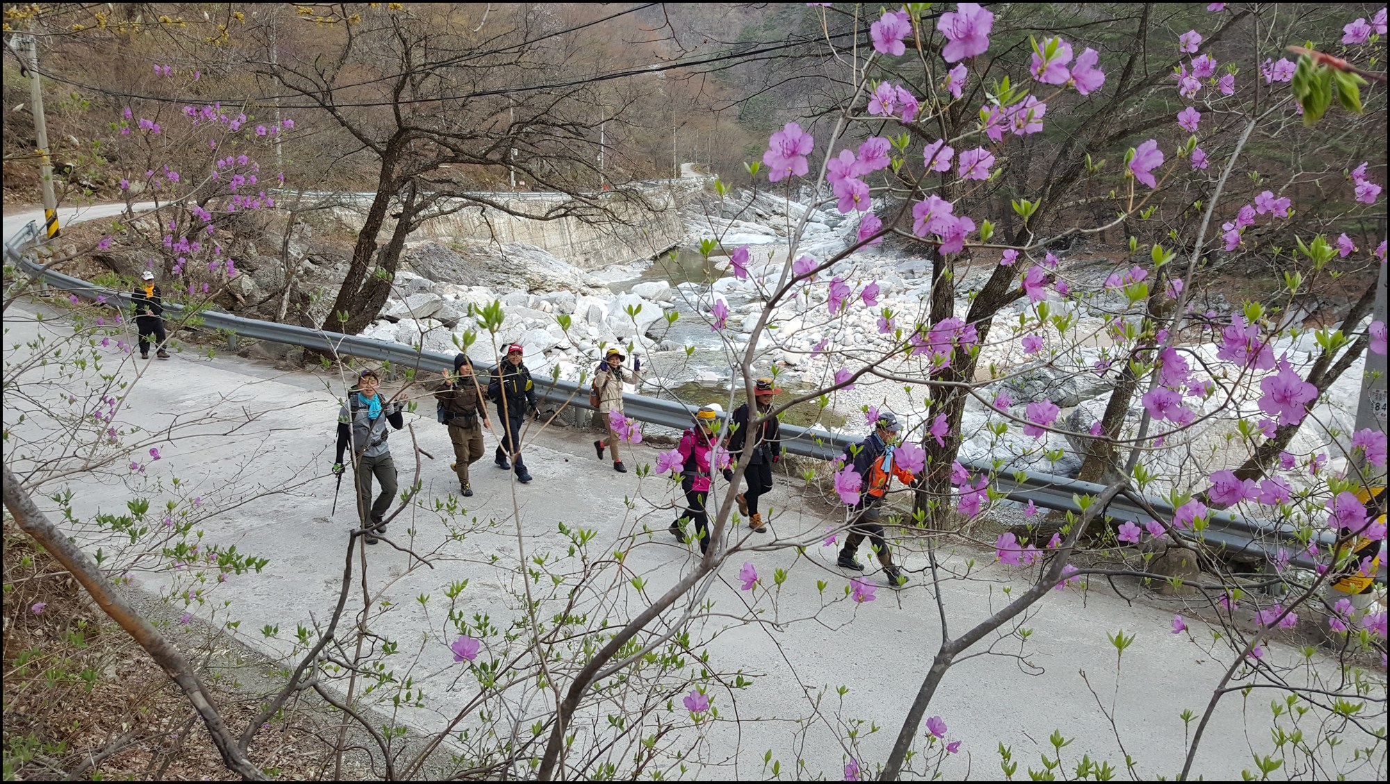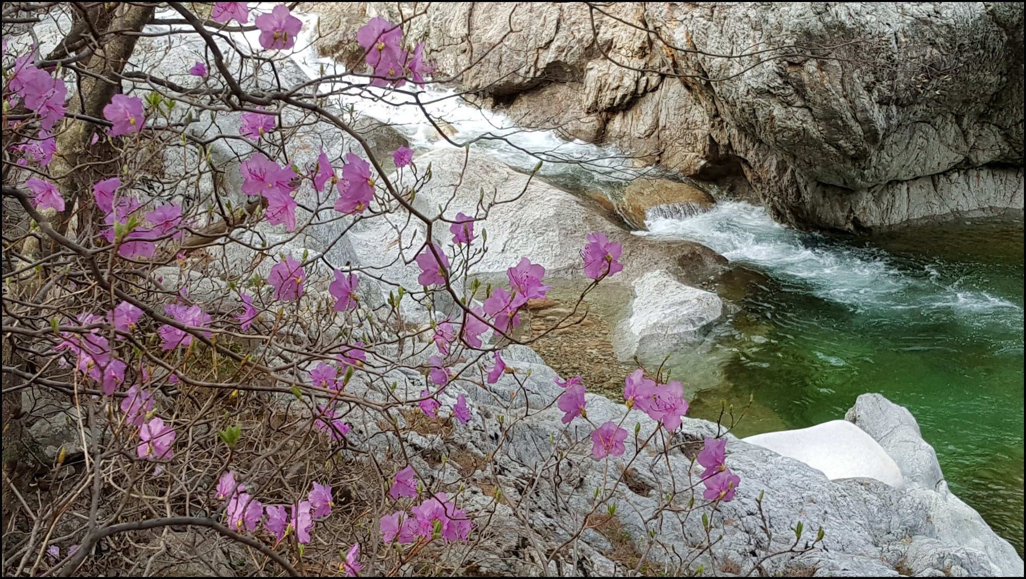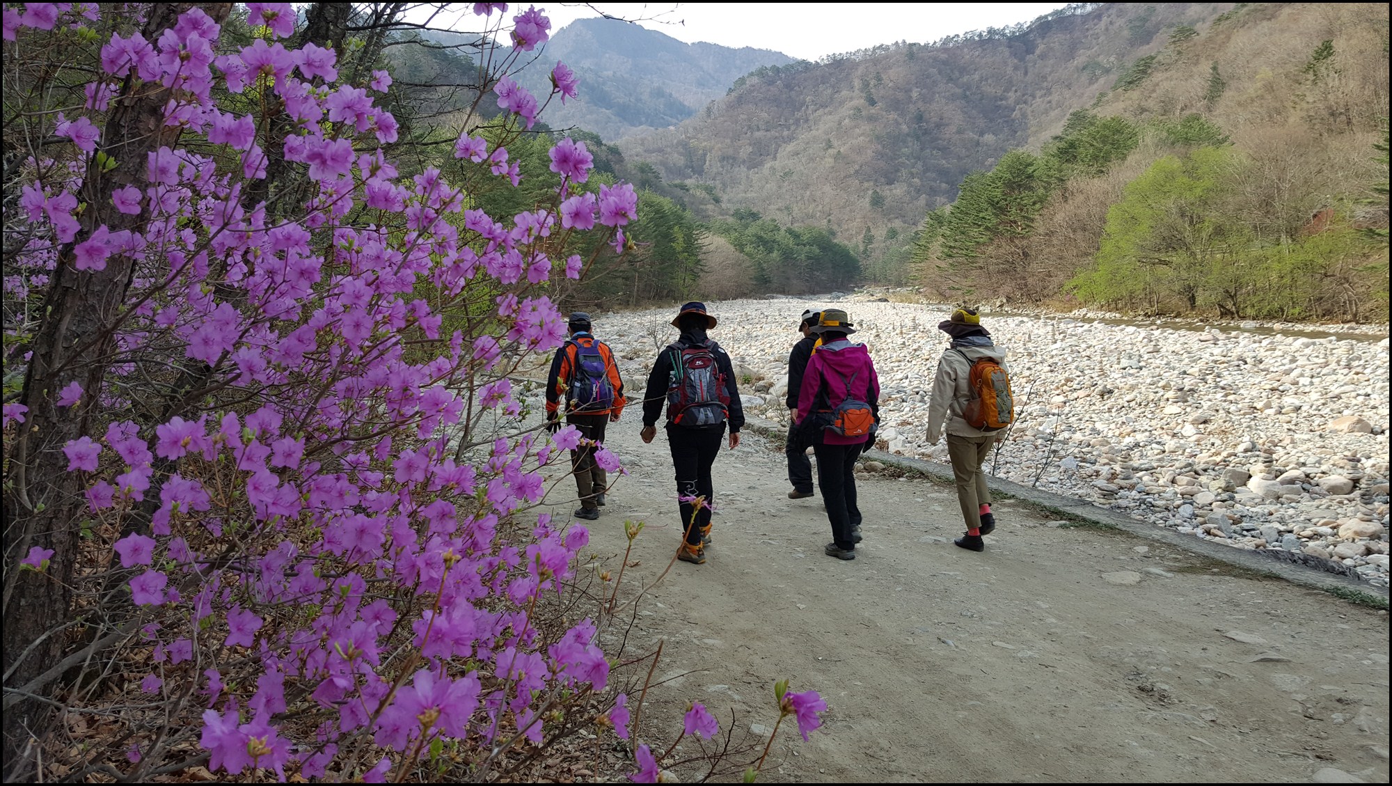 내설악 대청봉 봉정암 에서 흐르는 물줄기 따라 진달래 산벚꽃 야생화