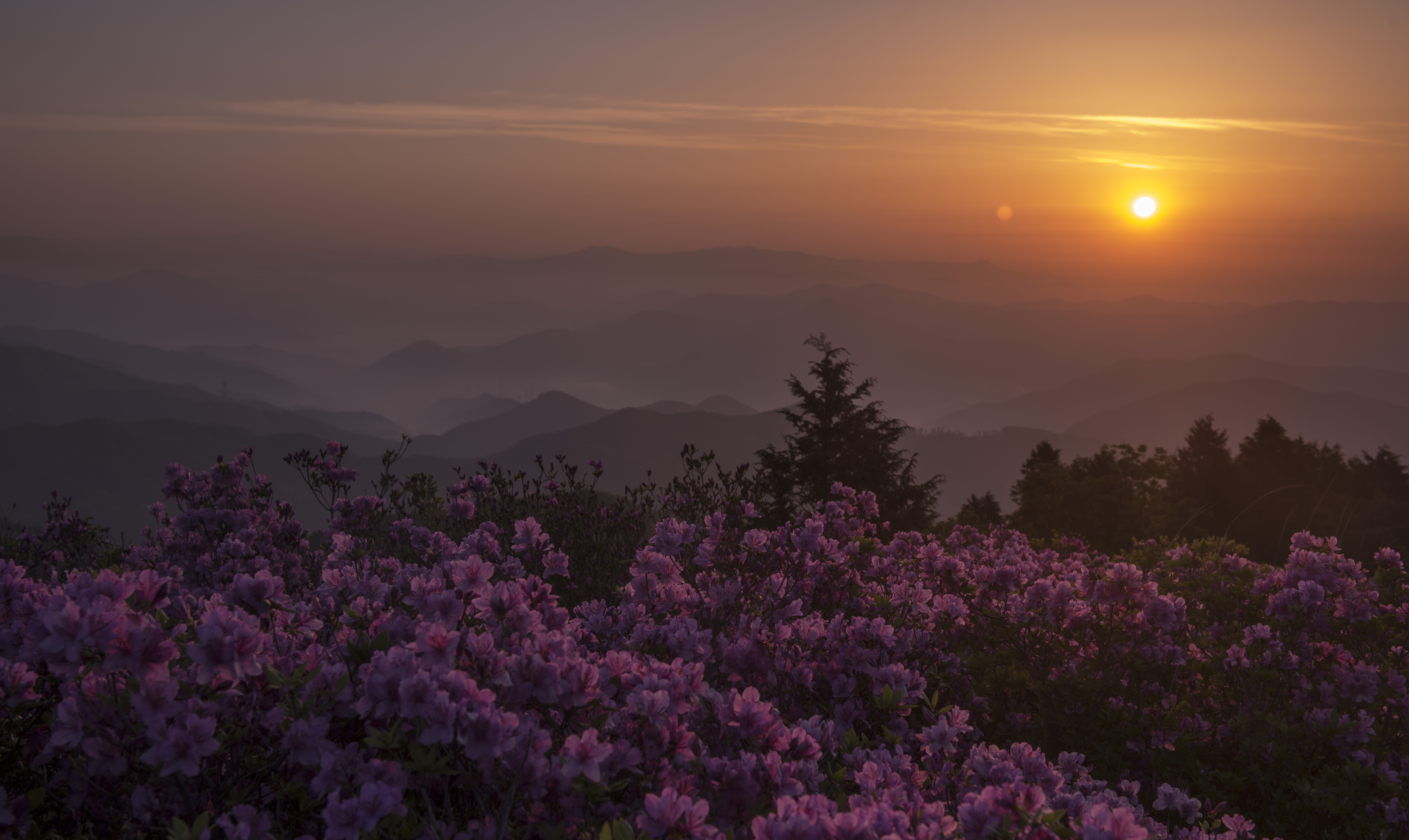 고동산 일출과함께 산철죽이 아름다워요