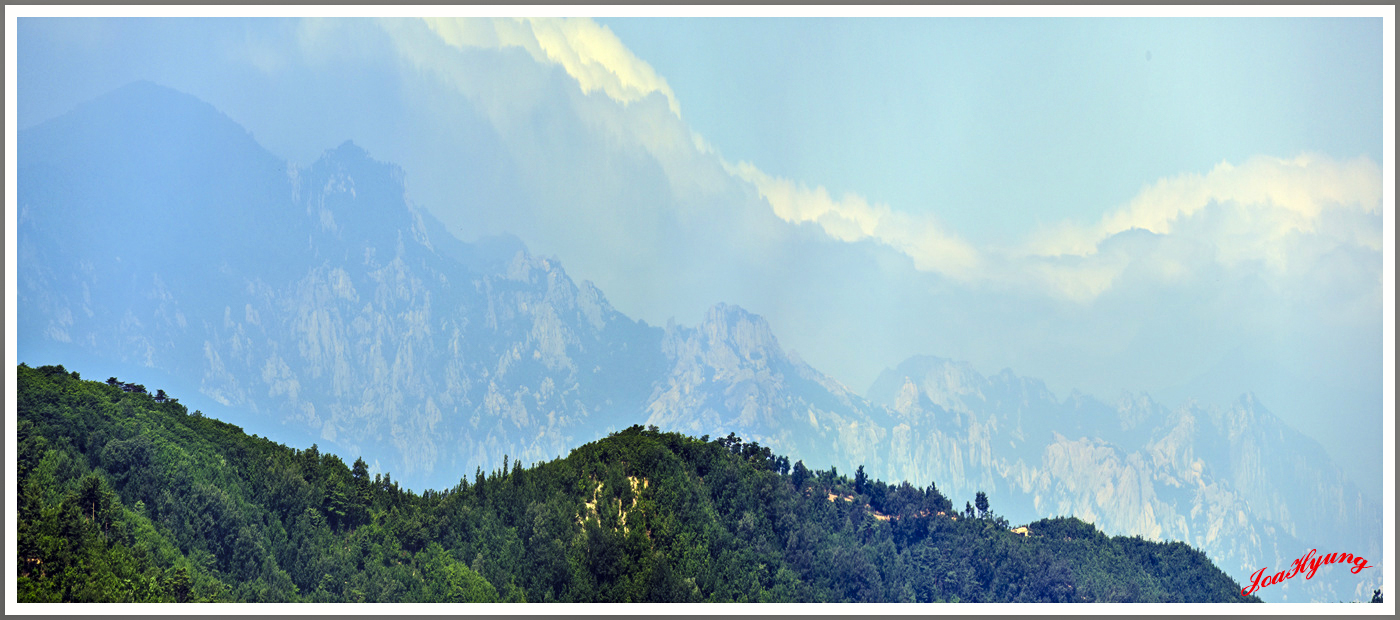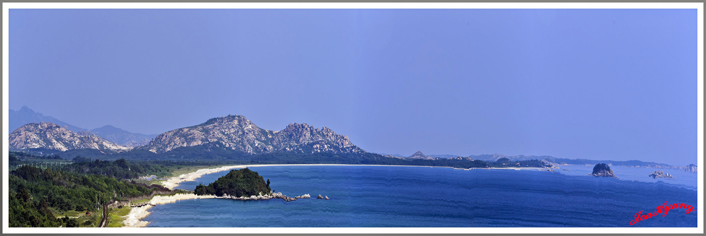날씨가 좋아 멀리 희미하게 보이는 금강산과 해금강의 아름다운 모습이지요.