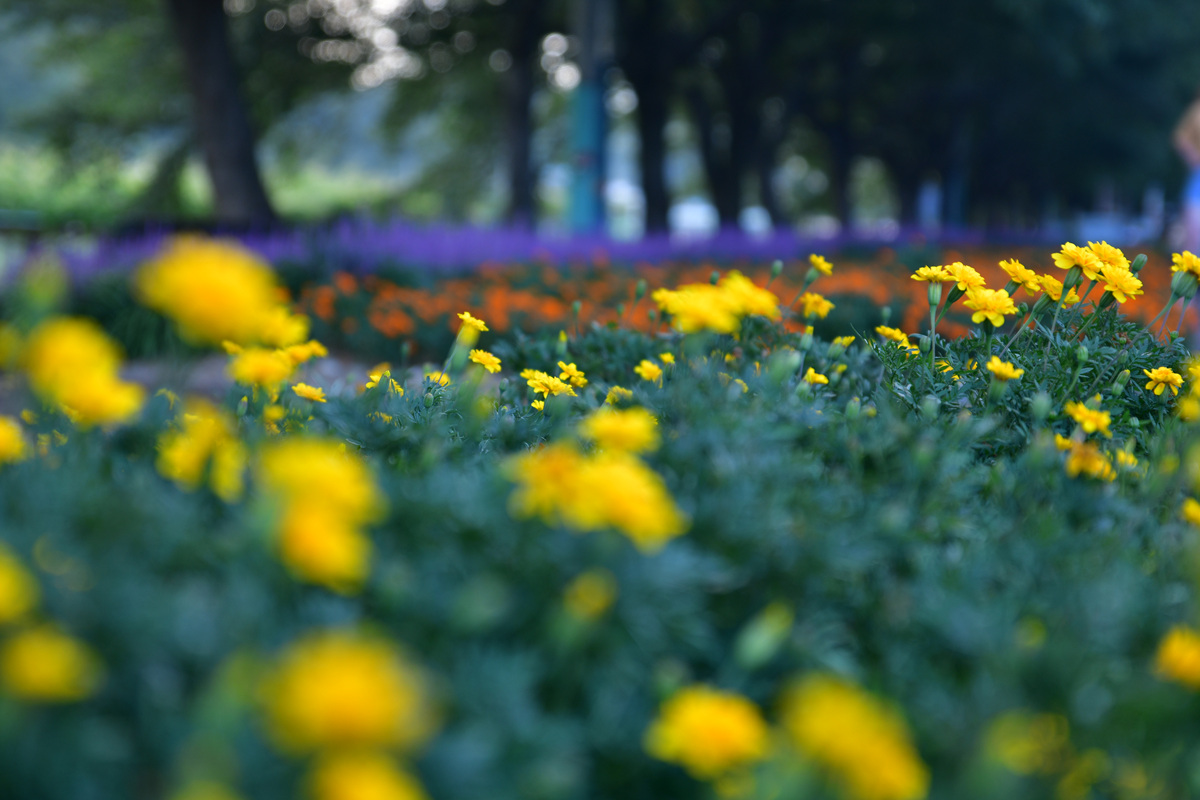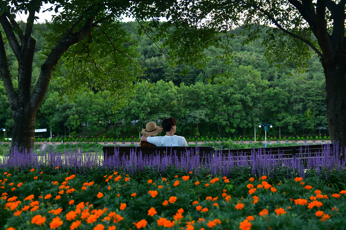 서천변의 주말 맥문동의 개황