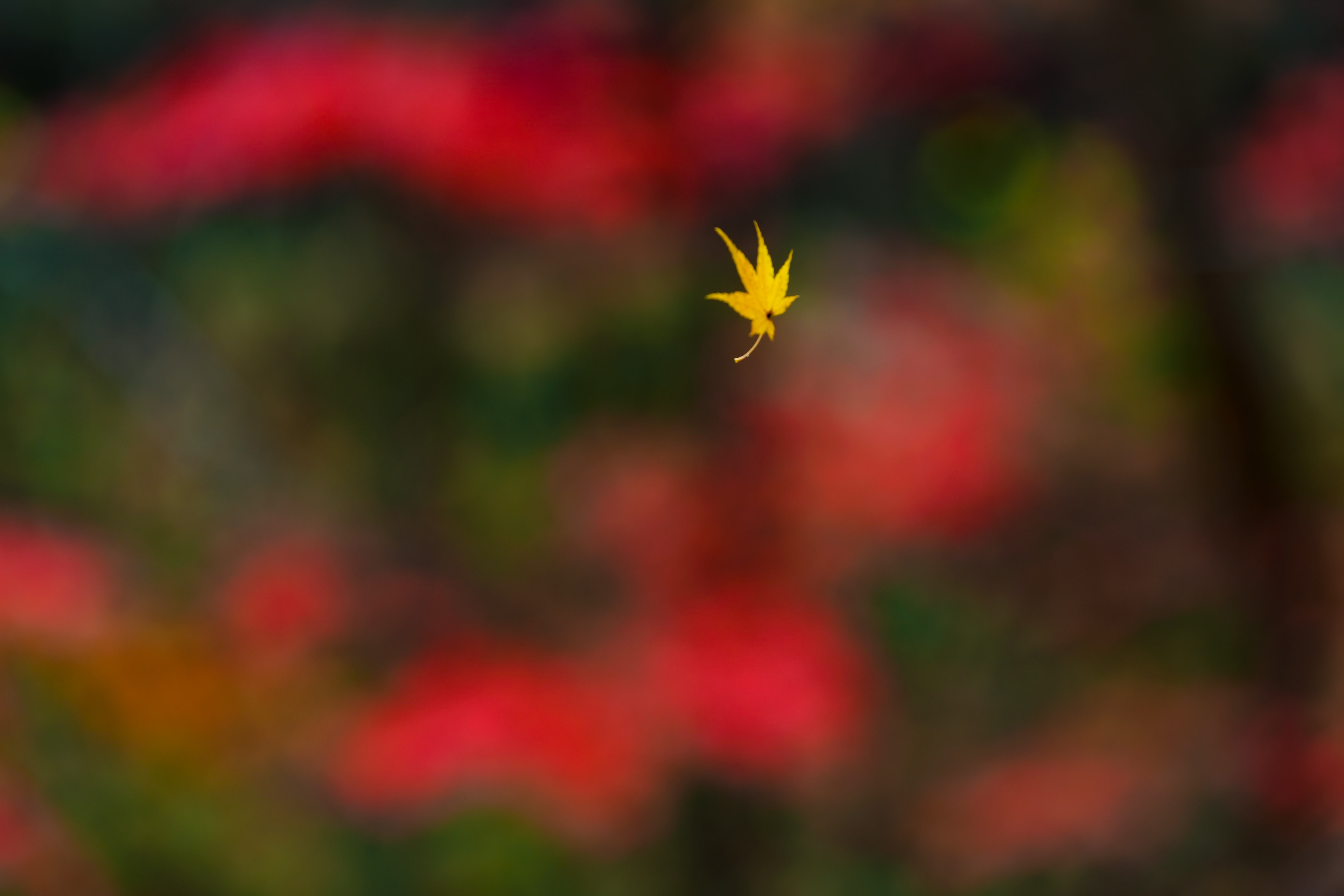 거미줄에 위태롭게 매달려 있는 단풍입니다