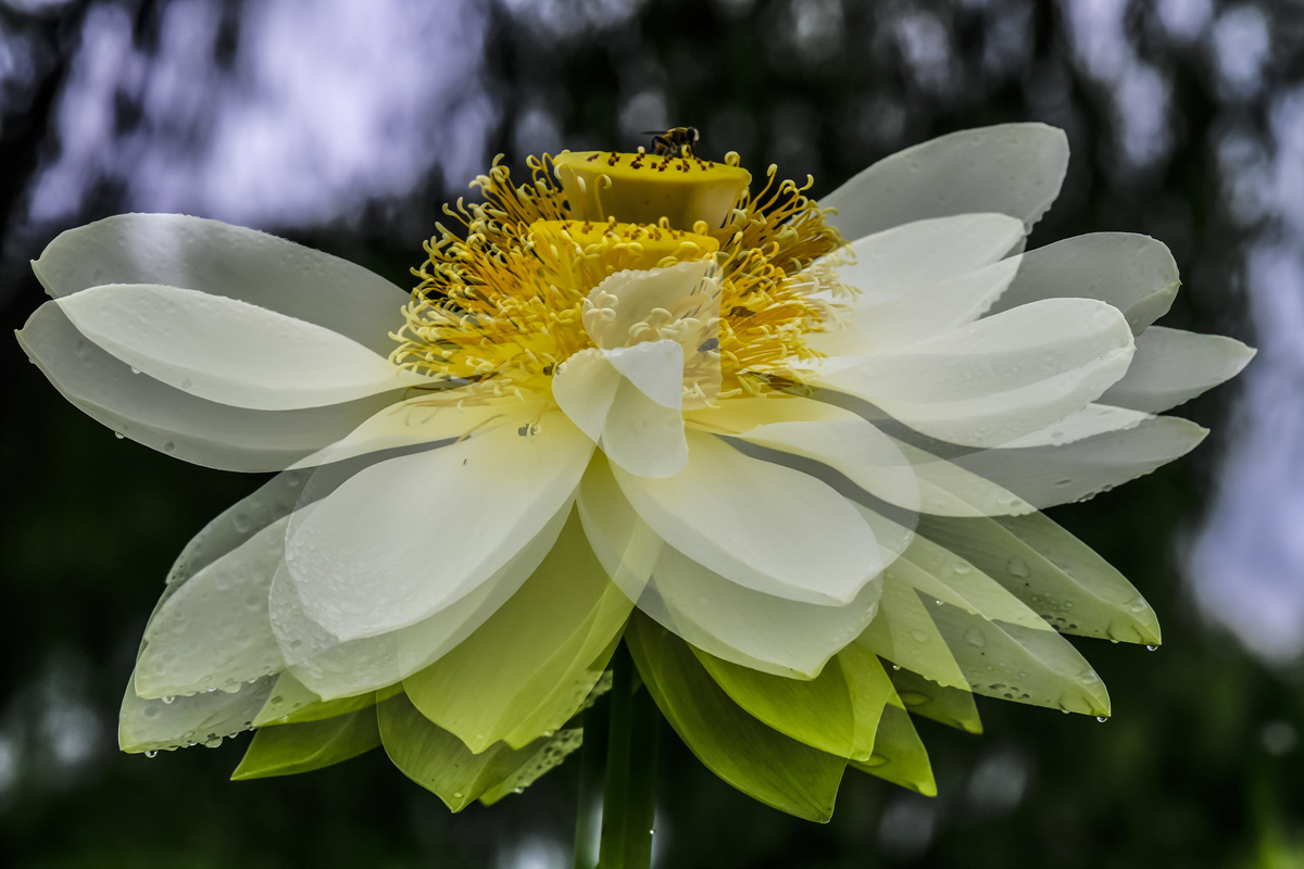 비 오는 날 백련을 다중노출로 담았더니 하나가 셋으로 변신을 하네요.