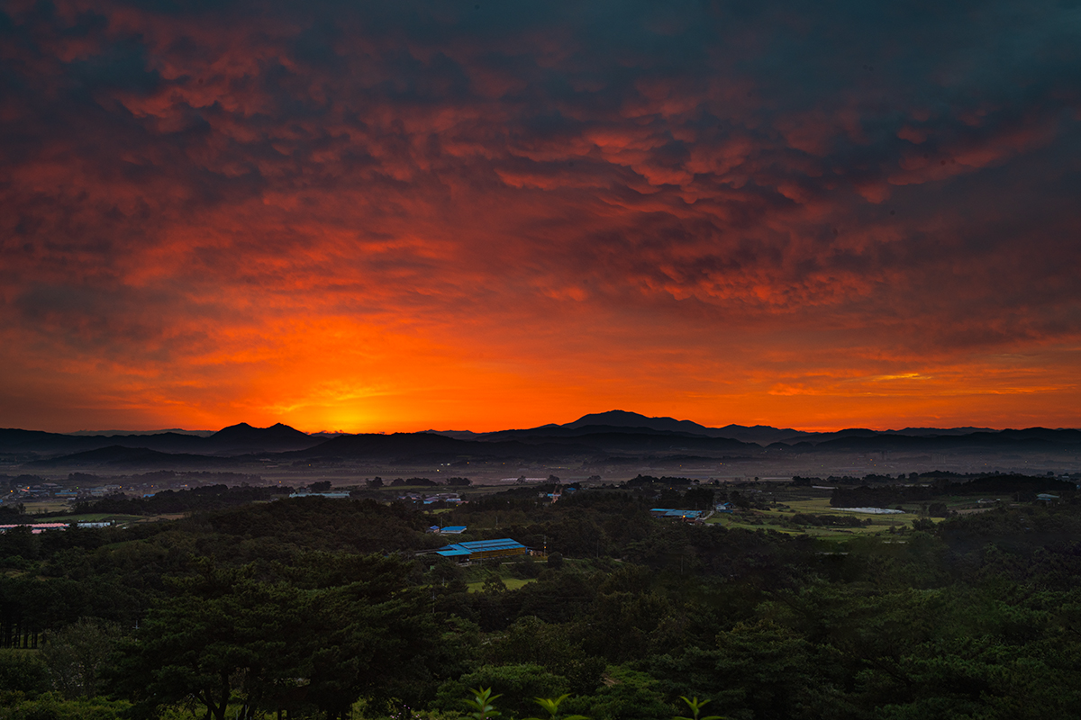 안개는 숨고 여명만 타오르다.