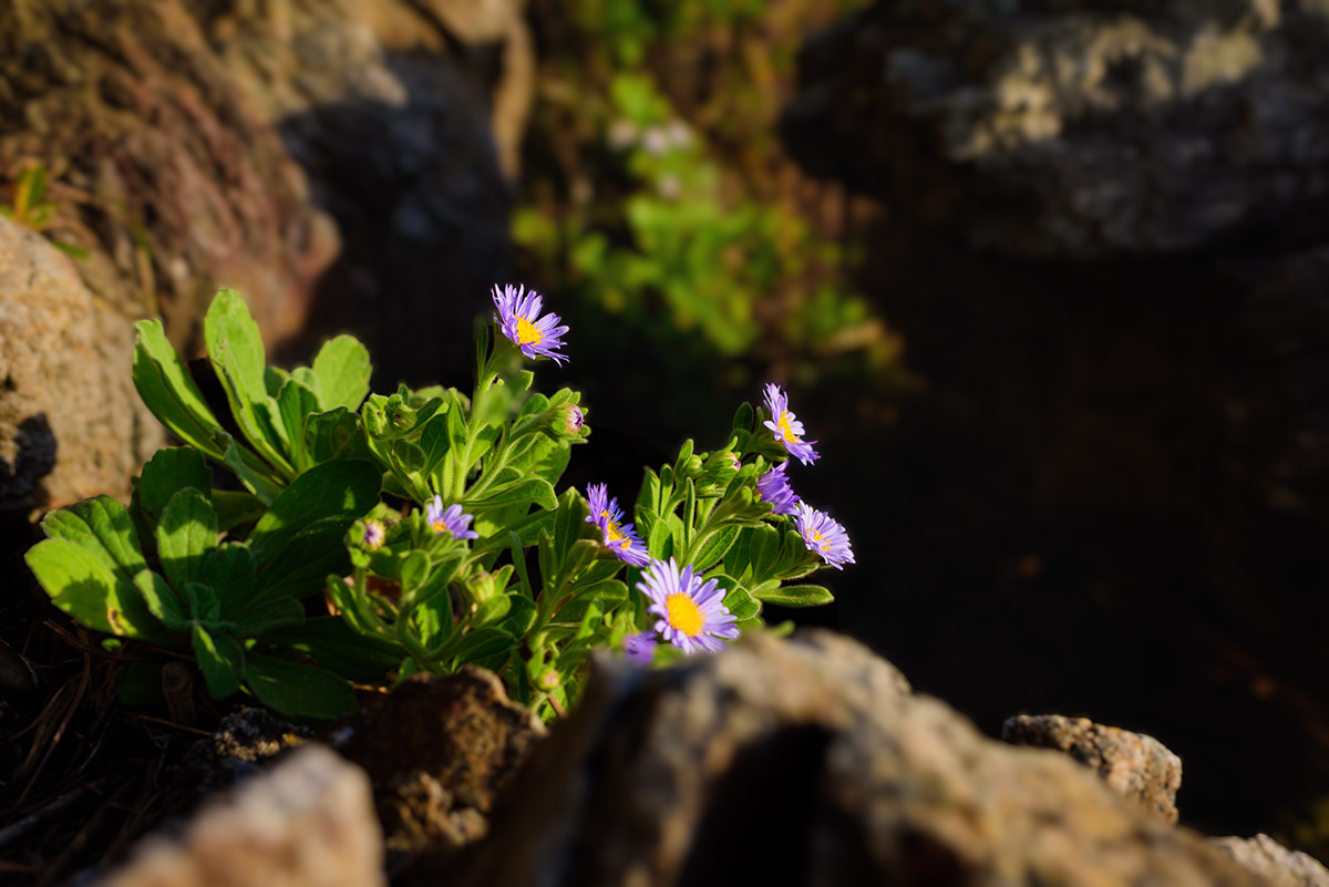 바위 곁에 숨겨진 꽃을