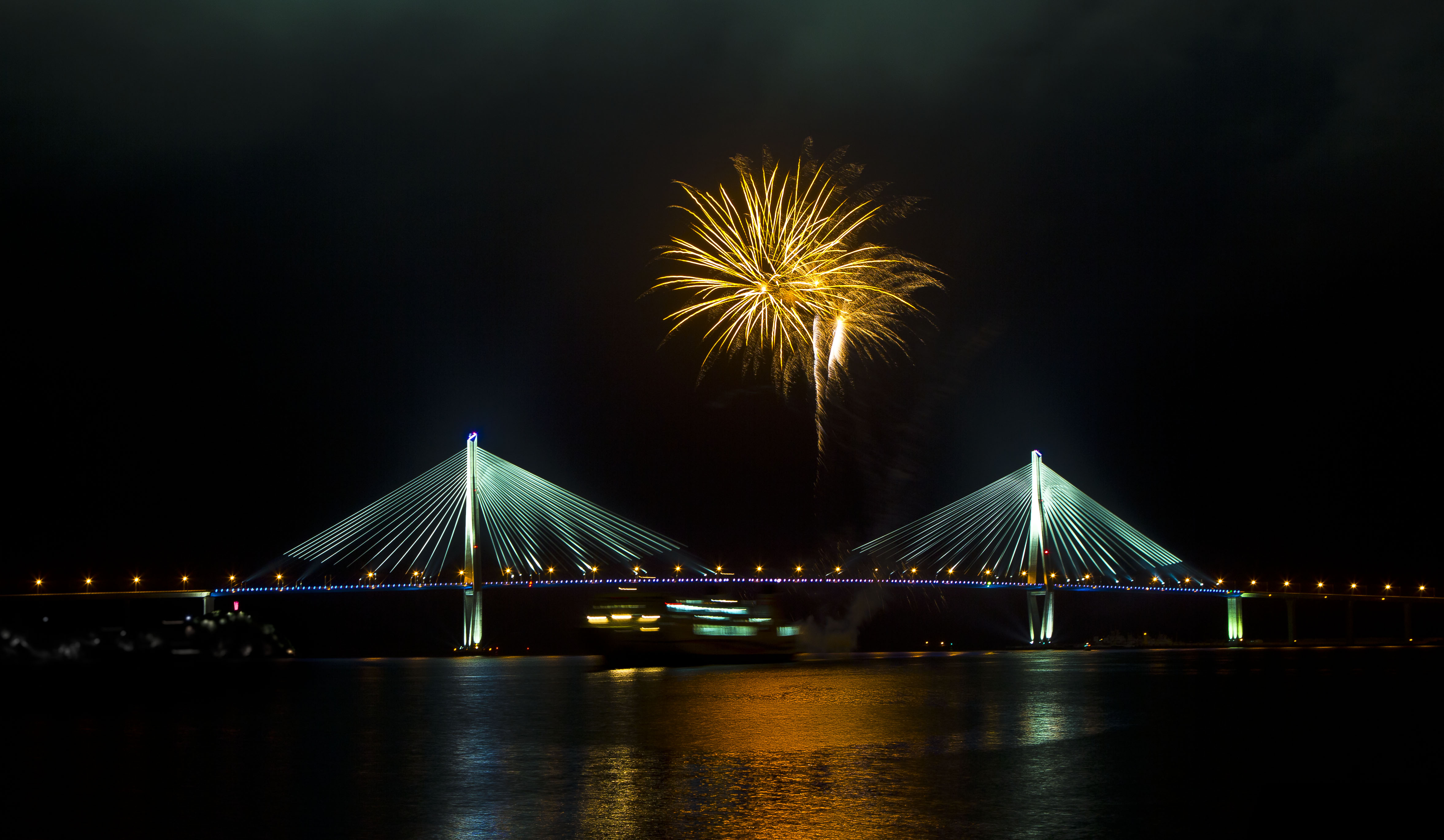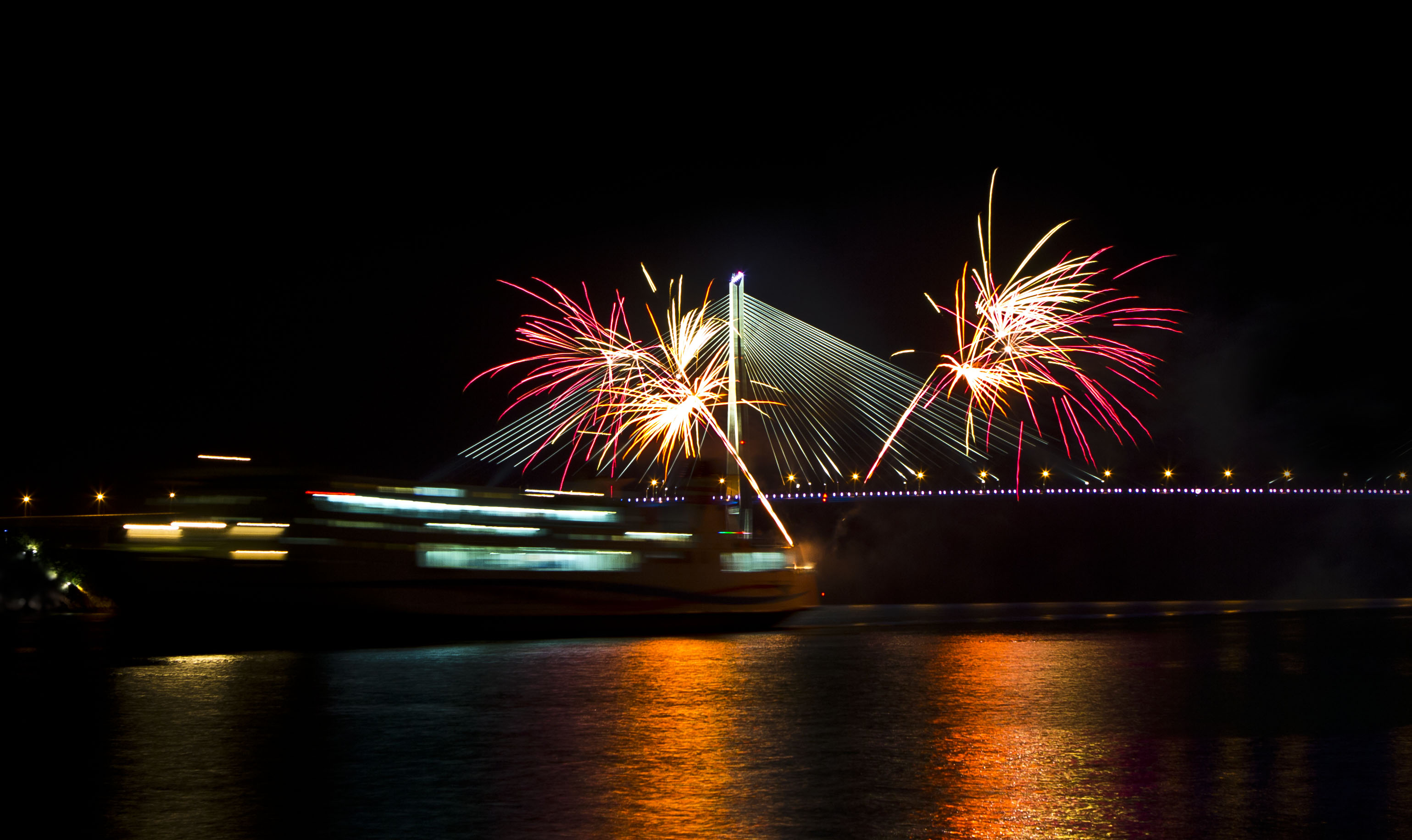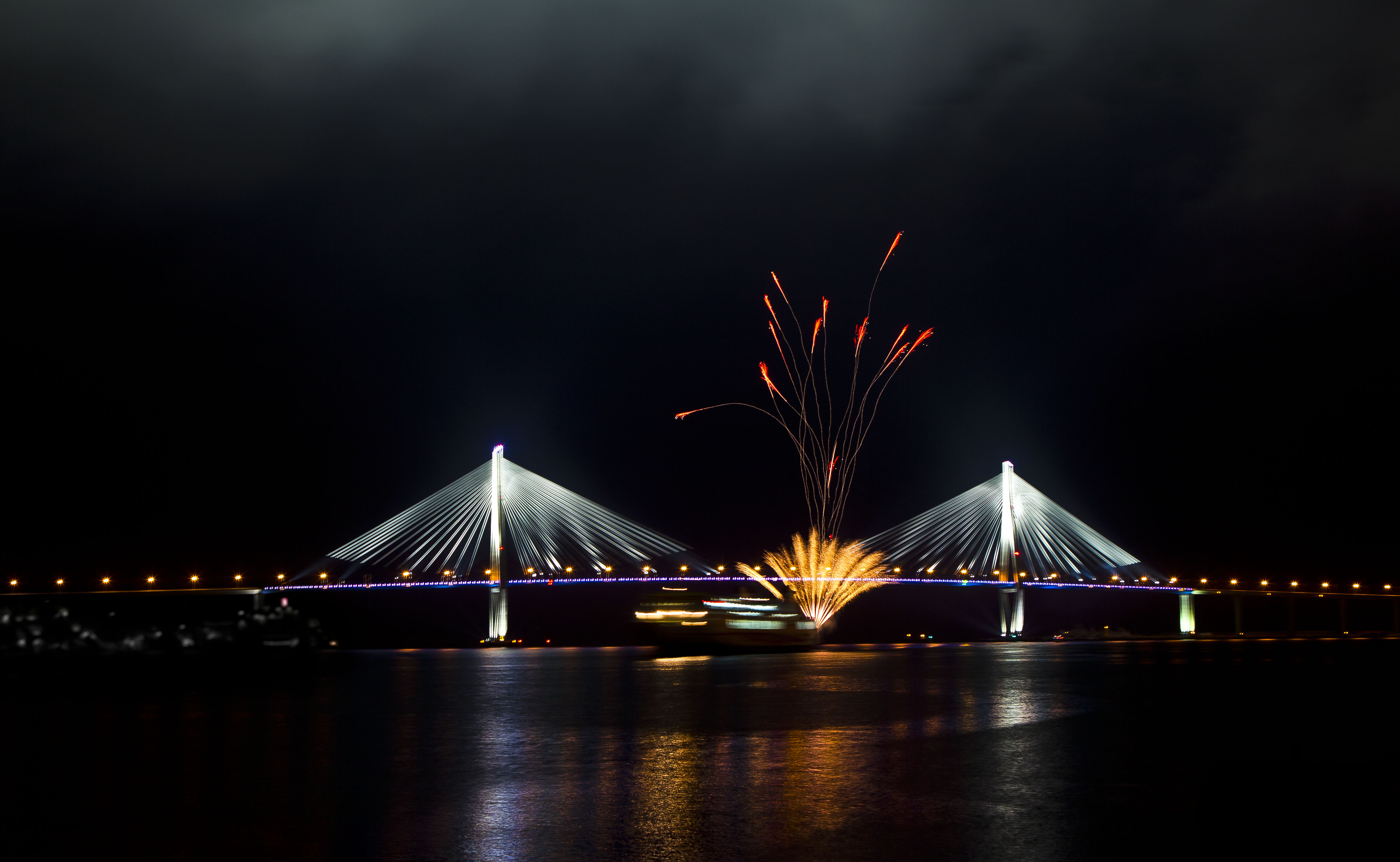 목포대교를 통과하면서 쏘아 올린 첫 번째 불꽃 .