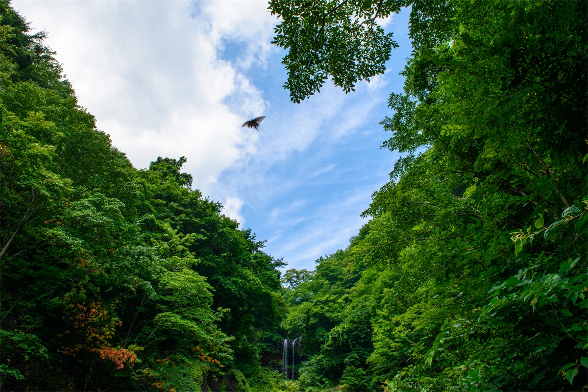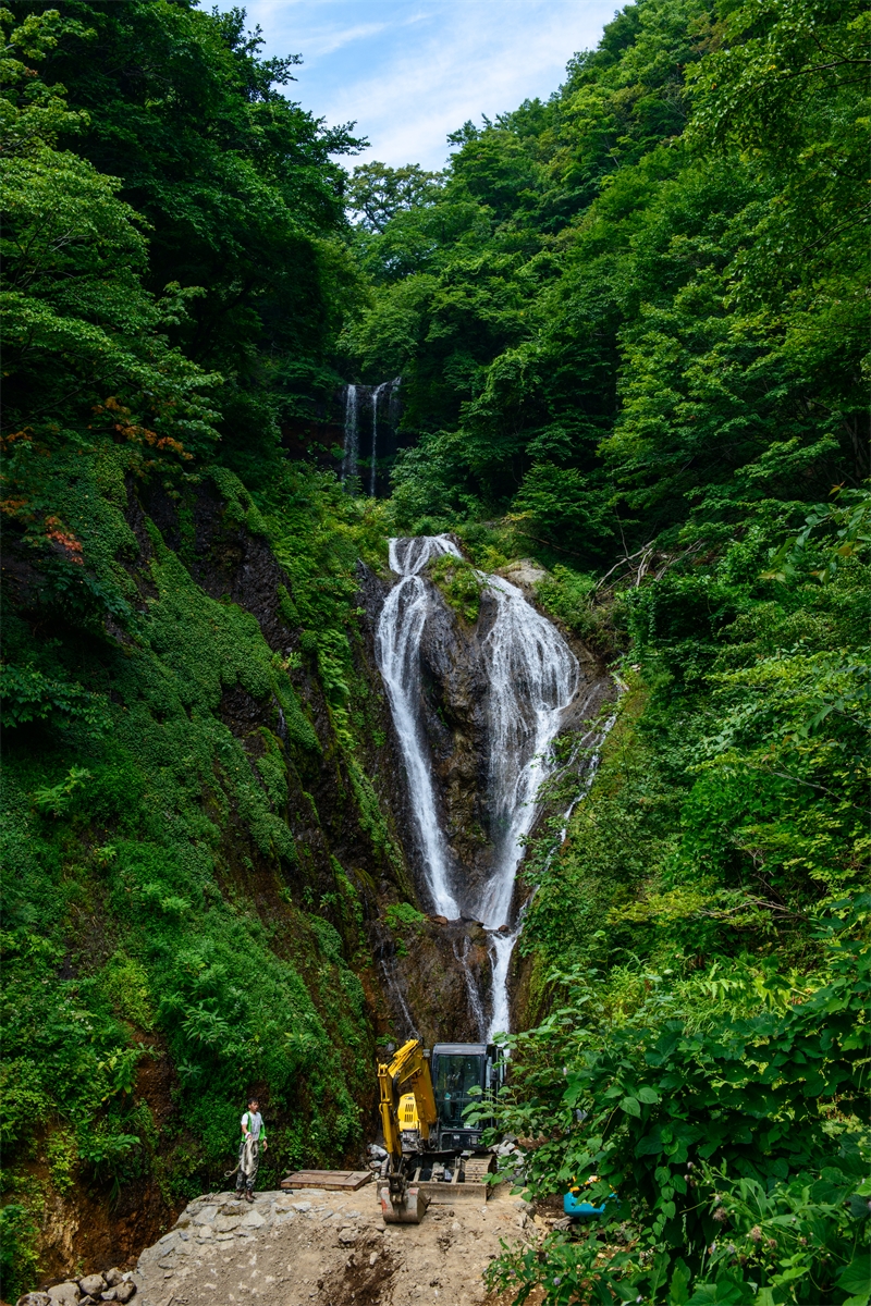 봉래폭포의 2단 물줄기 울릉의 식수원에서, 공사중으로 완전한 폭포가 아쉬운 날이었습니다. 한 마리 나비 되어 하늘을 날아봅니다.