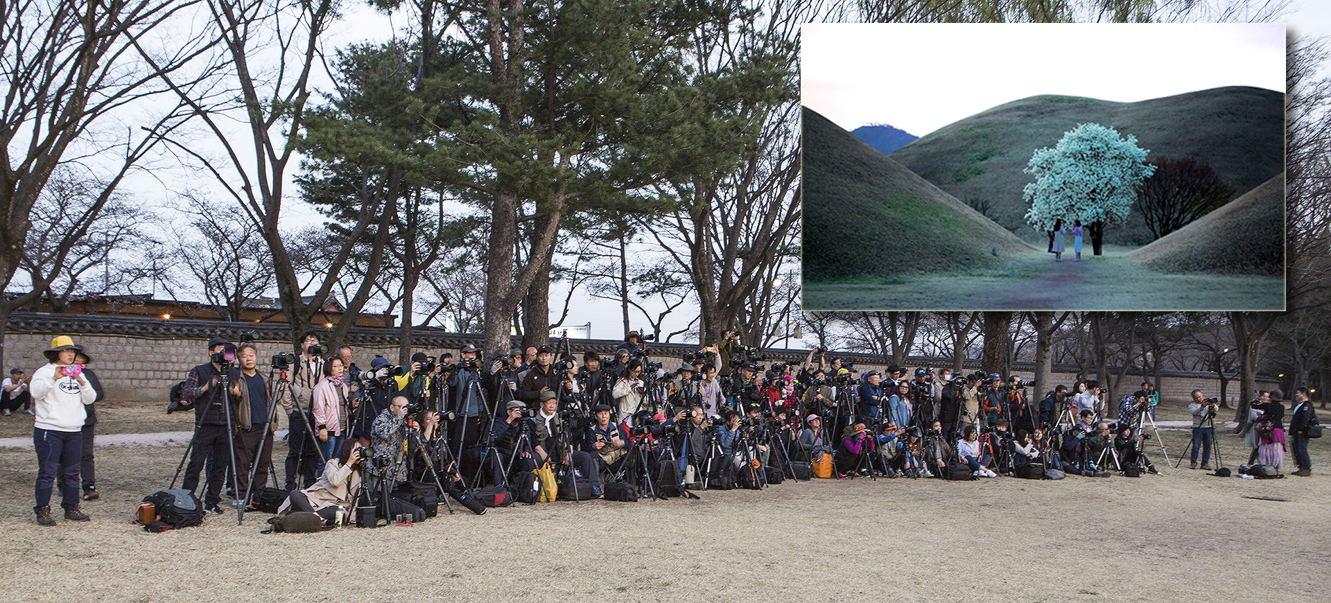 평일임에도 대릉원 목련을 담을려고 전국에서 달려오 진사님들의 열정