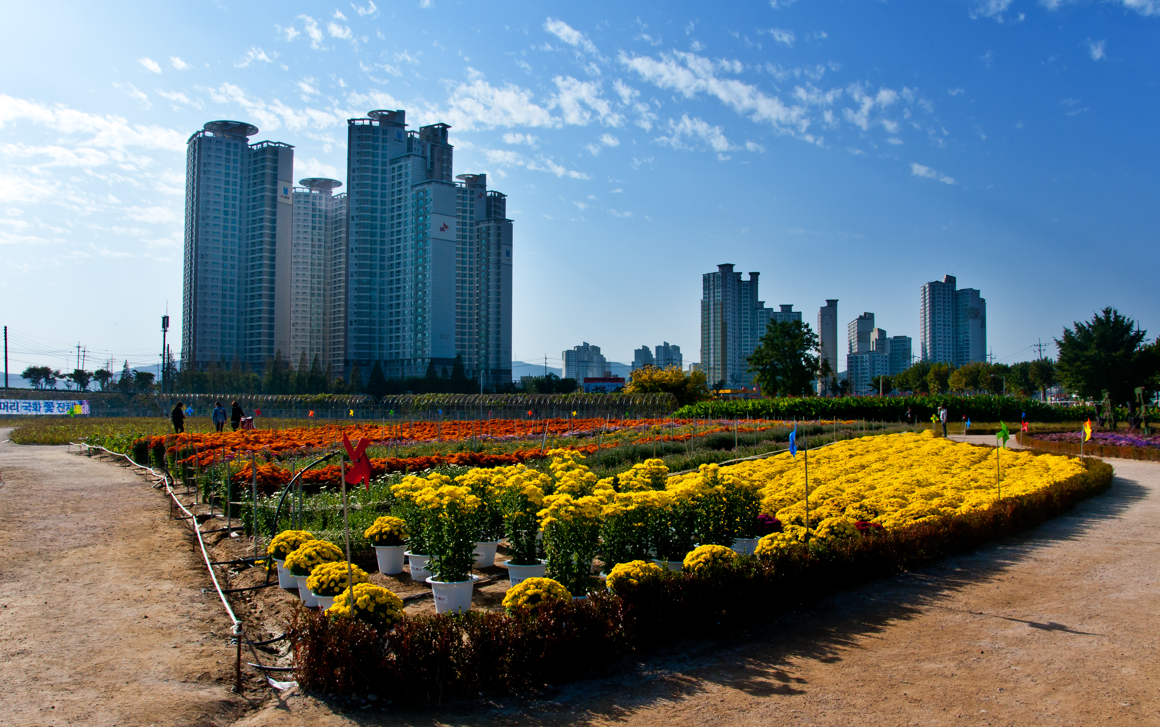 포항시 하수정화시설 단지를 국화꽃 동산으로 바꿔났읍니다