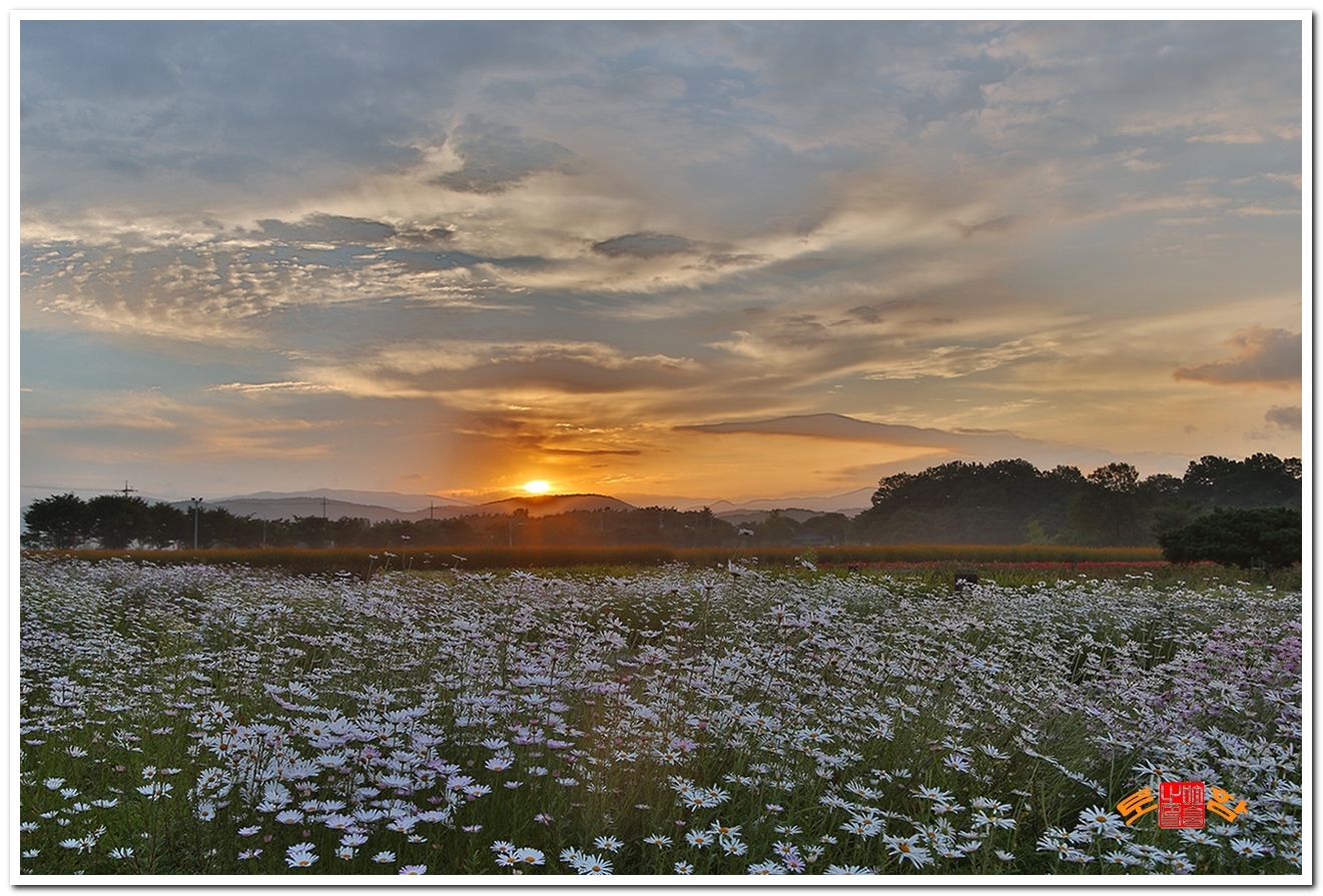 꽃밭 일출