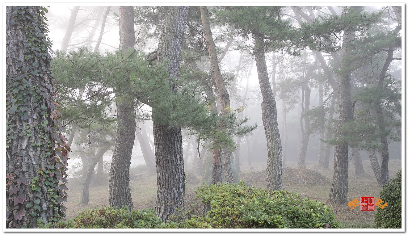 안개낀 솔숲