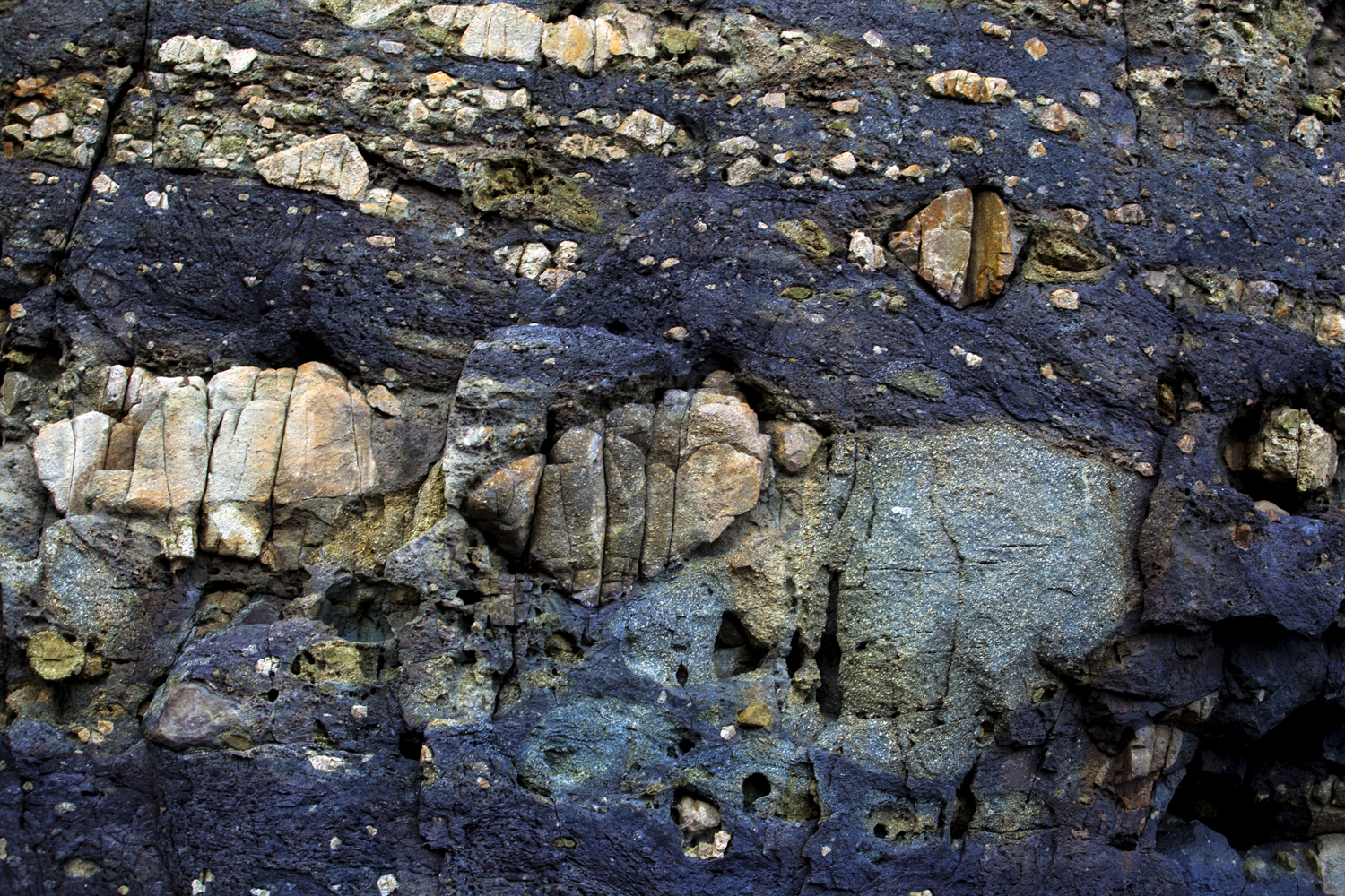 파도의 침식작용으로 만들어진 바닷가 절벽 암석표면이 예술로 승화