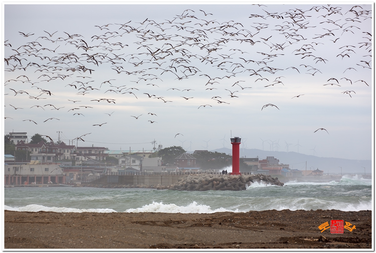 태풍 낭카의 꼬리가 보일 때쯤 갈매기 떼지어 날다.