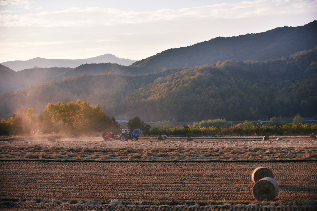막바지 가을걷이가 한창인 기북들녘