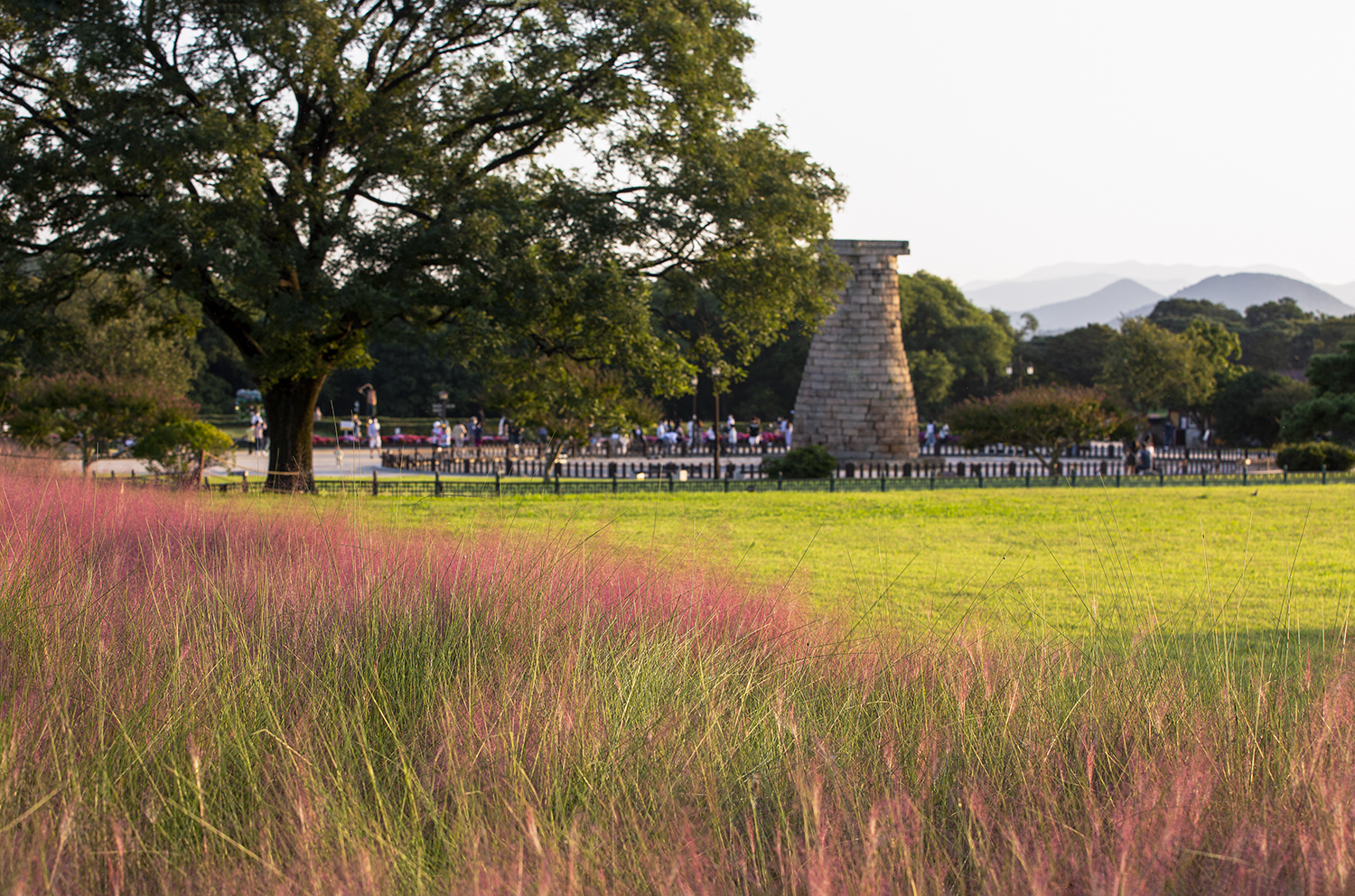 경주에 살면서 핑크 뮬리가 핀 첨성대 사진을 오랜만에