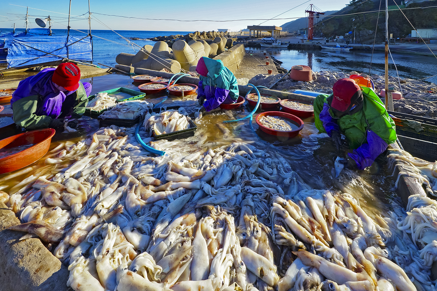 지금은 오징어 어획량이 급감 예전처럼 대량의 작업 모습을 볼 수 없답니다(중국 싹쓸이 조업 영향)