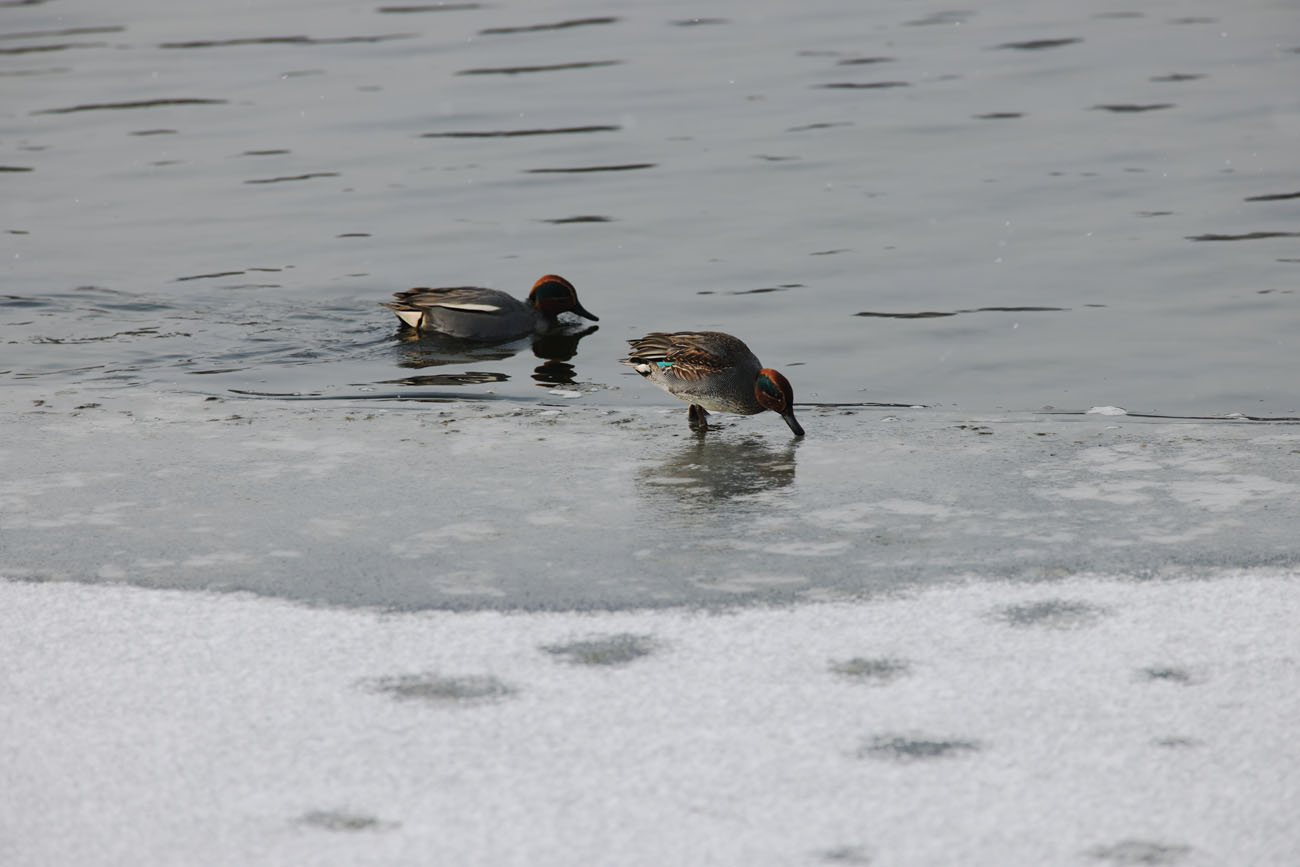 얼음위 에서 노는 오리