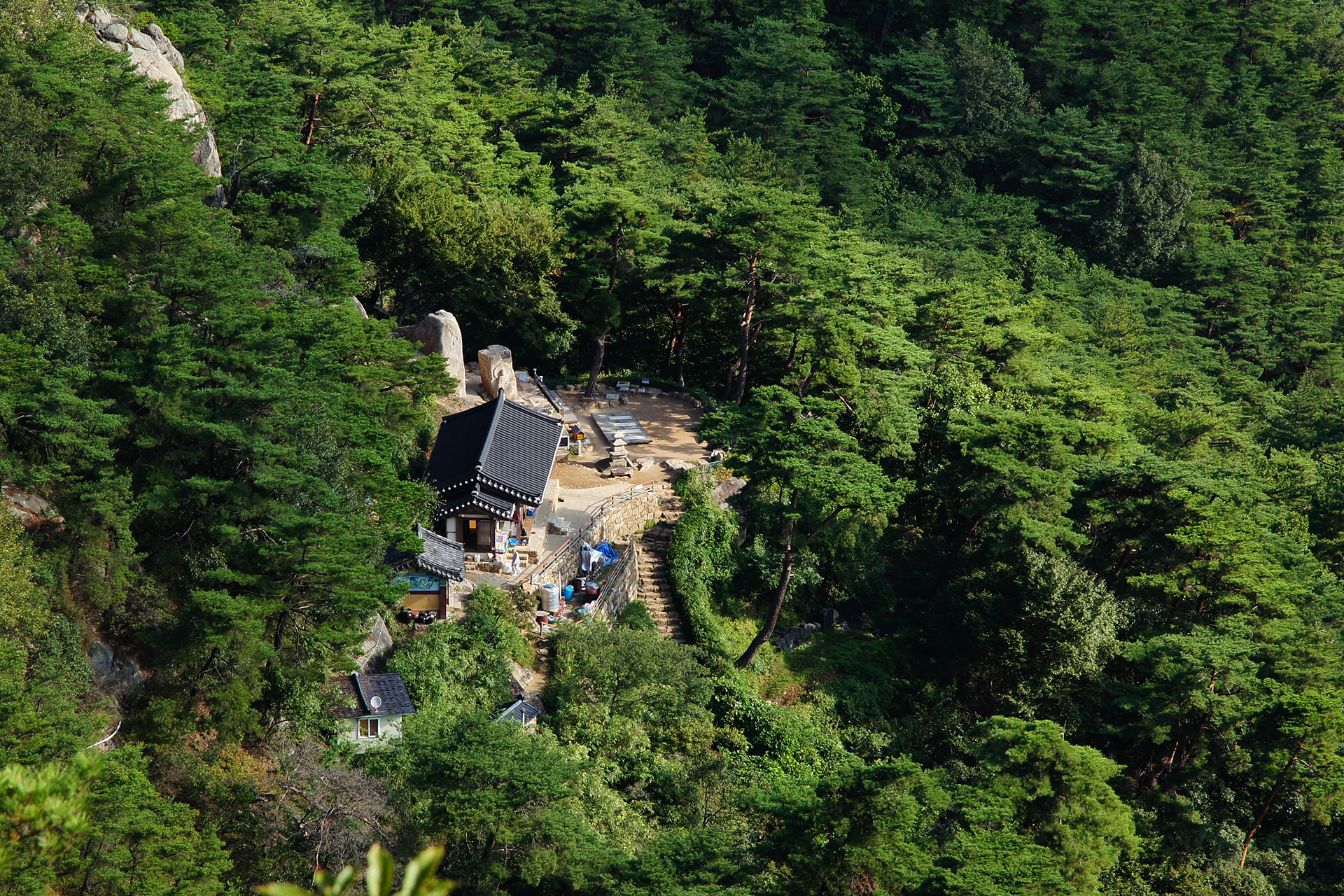 경주 남산 정상에서 바라본 칠불암 전경(해발 400m 지점)