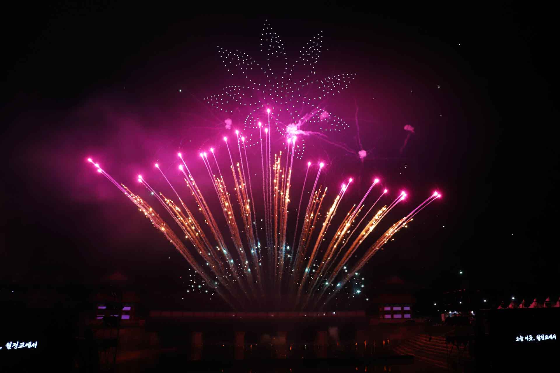 월정교 위에서 화려한 불꽃쇼