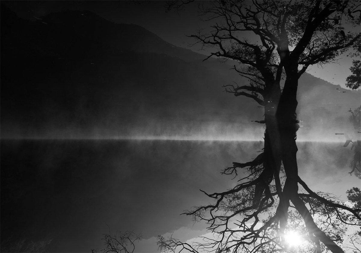 물안개 주산지 흑백처리