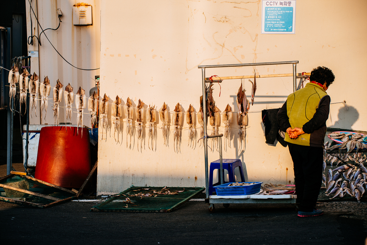 아주머니의 뒷모습이 근심이 가득합니다.